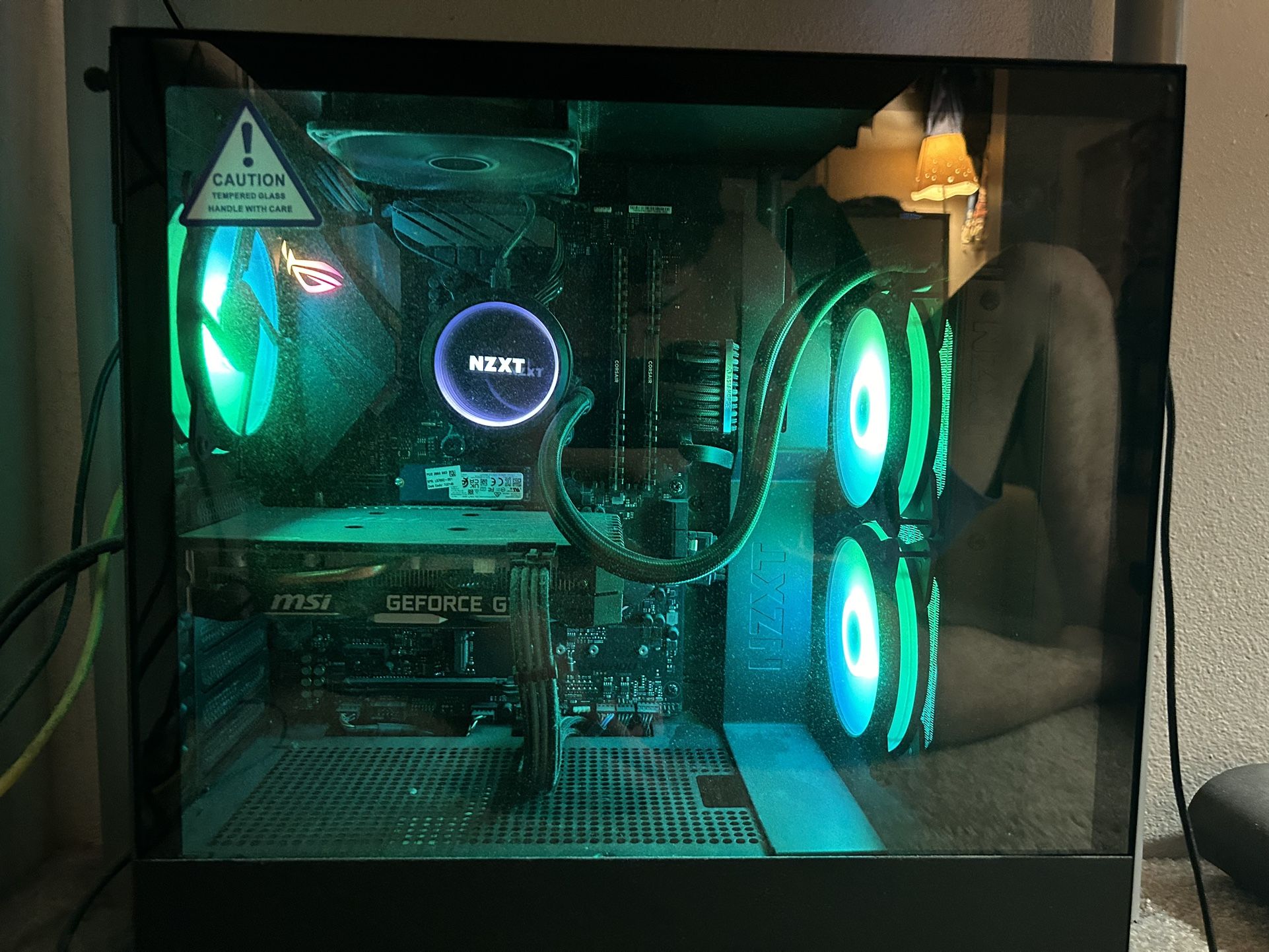 Selling because I don’t play games no more, Will clean dust and dirt from all appliances Necessary cables included PC Specs: MSI Ventus GTX 1660 Ryzen 7 2700x 16gb Corsair ram 3200 MHZ 2Tb HDD 256 Mb SSD 3 RGB Fans NZXT H510 Case NZXT Kraken AIO Asus ROG motherboard Ducky One Two mini Keyboard with silver switches Acer monitor 60Hz Message me if you need additional info!
