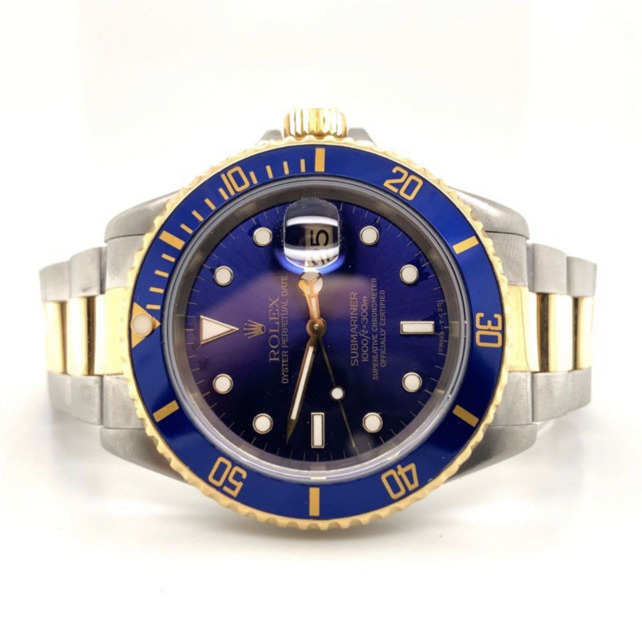 Designs Rolex Submariner Date🥰🤙 Rolex 18K two-tone Submariner. The case measures 40mm and features a blue bezel with blue dial. For sell $10,500🤙❤️