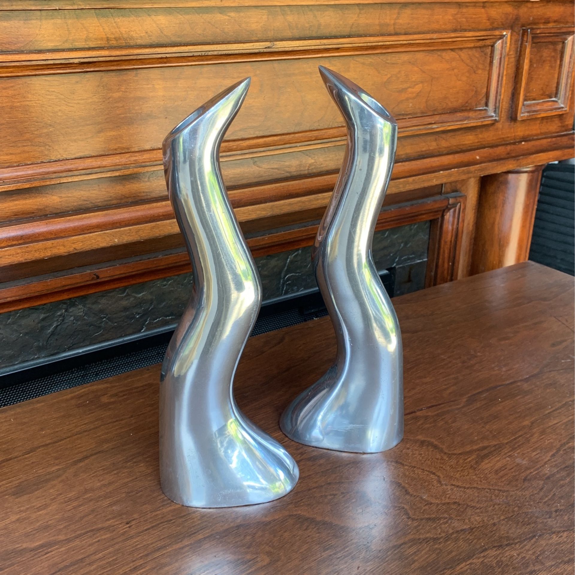 12” tall aluminum MCM candlesticks. Some minor surface wear but great for their age. Great addition to your decor. Priced per research. Will consider offers