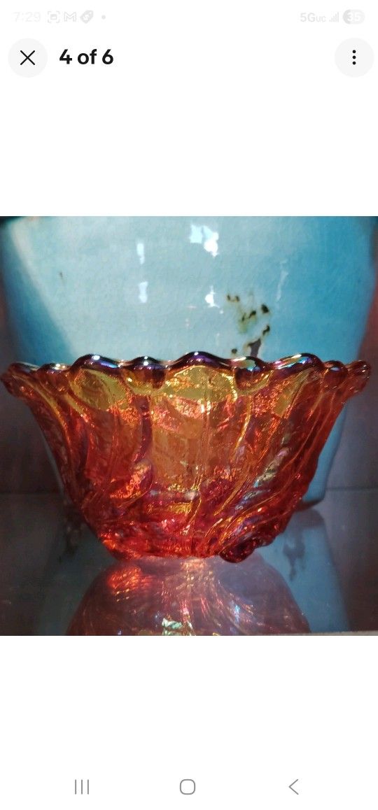 Antique Marigold Dish Irridescent Beveled Fluted Top Tapered Down