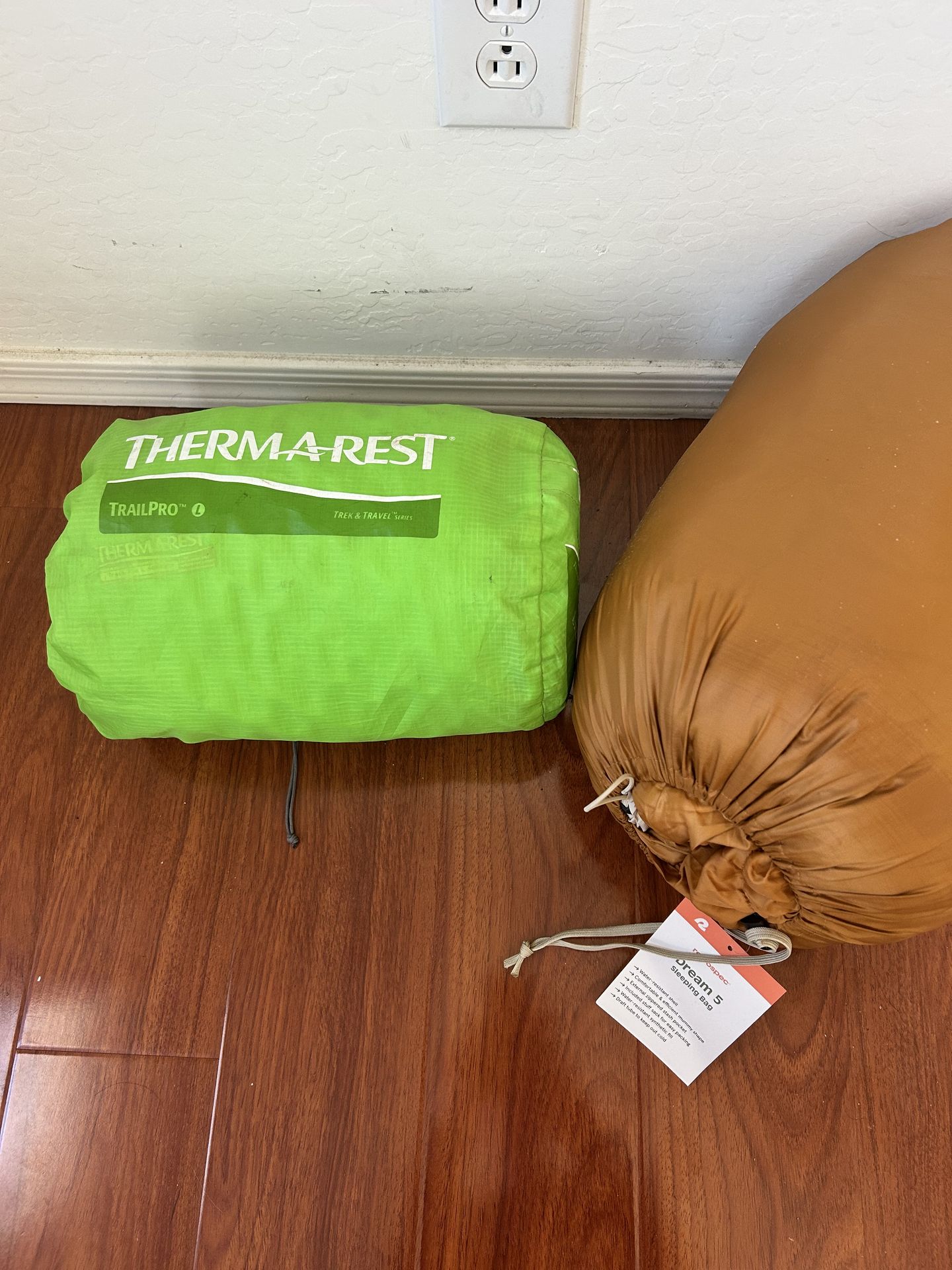Ultimate camping/backpacking/car camping sleep system to keep you warm no matter what. Sleeping Bag: Dream 5F (good down to 5 degrees F) - regular size 72" long Completely new never used $80 retail. Asking $60 Sleeping Pad: Thermarest Trail Pro Large - R Value of 4.4 (Good for snow) Bought used and never used. $175 new. Asking $100 I ended up buying something else since I wasn't gonna do cold camping. Can purchase together or separate. Also interested in trading for lightweight 2 person backpacking tent like the Lanshen 2 or something like that.