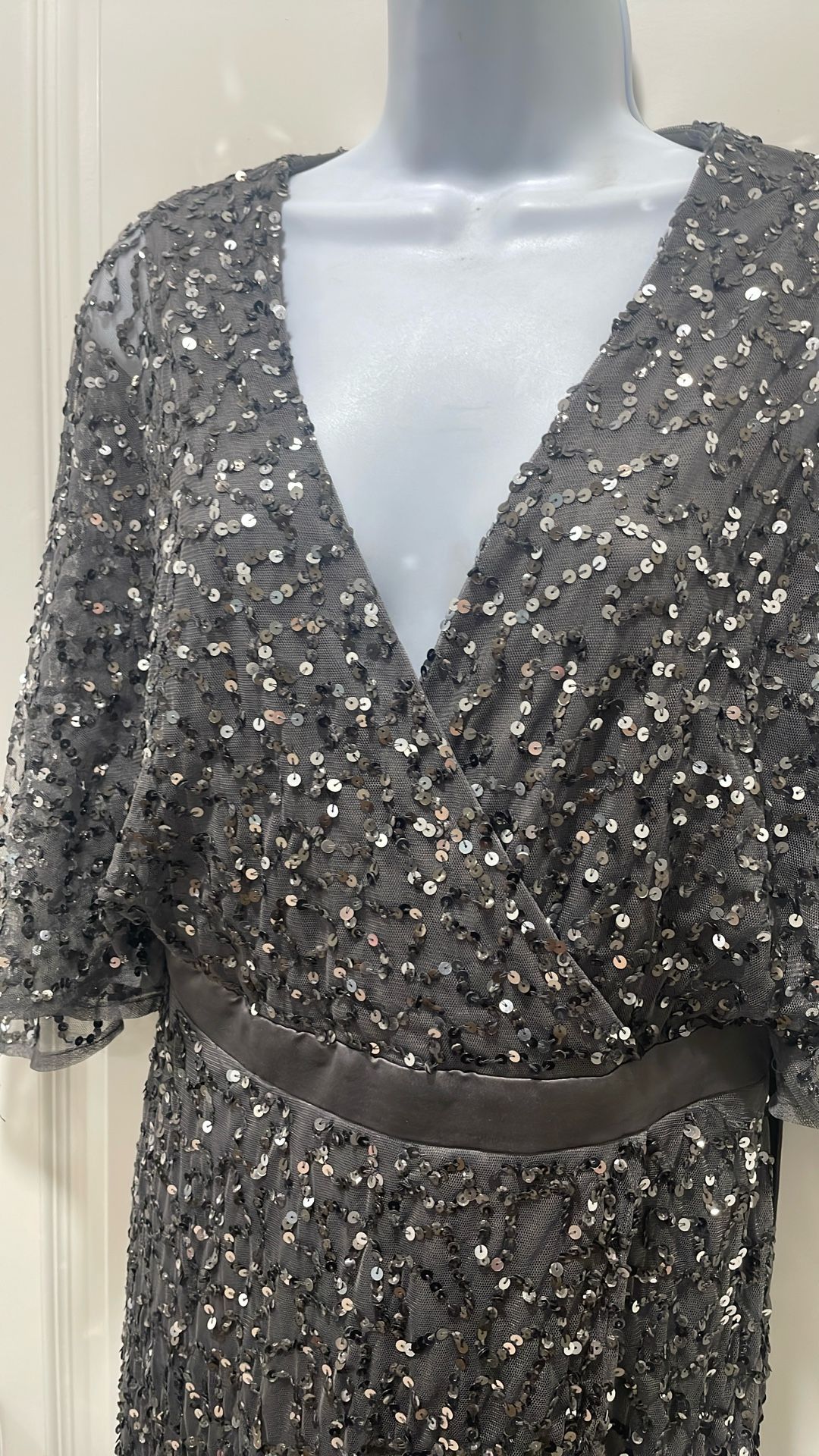Color gray size 6 , color gris con lentejuelas usado 1 vez talla 6 ,,,en 20 dls o mejor precio