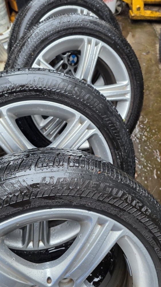 Hi I have 4. 225 50 17 All Season Rims and tires complete set They are Bridgestone driveguard run flats All tires have about 50-70% thread Only one rim has a tiny crack in the rim but all the rest are in good condition Just one tire was $240 F30 320i 328i 330i 428i 430i
