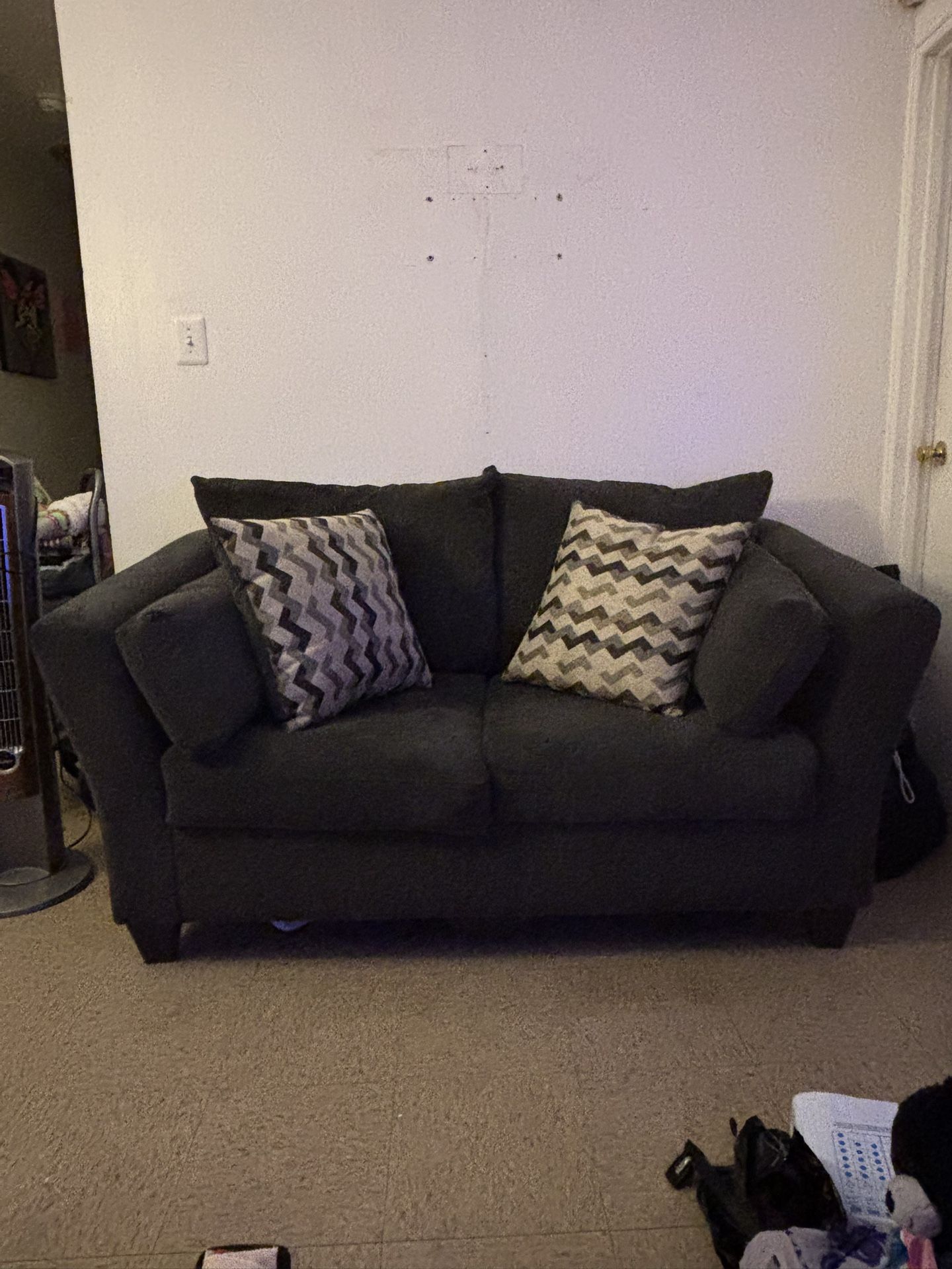 BOBS furniture Greg couch, 4 years old, not deep cleaned , no harsh stains, willing to send more photos if interested. Pick up only. NO DELIVERY