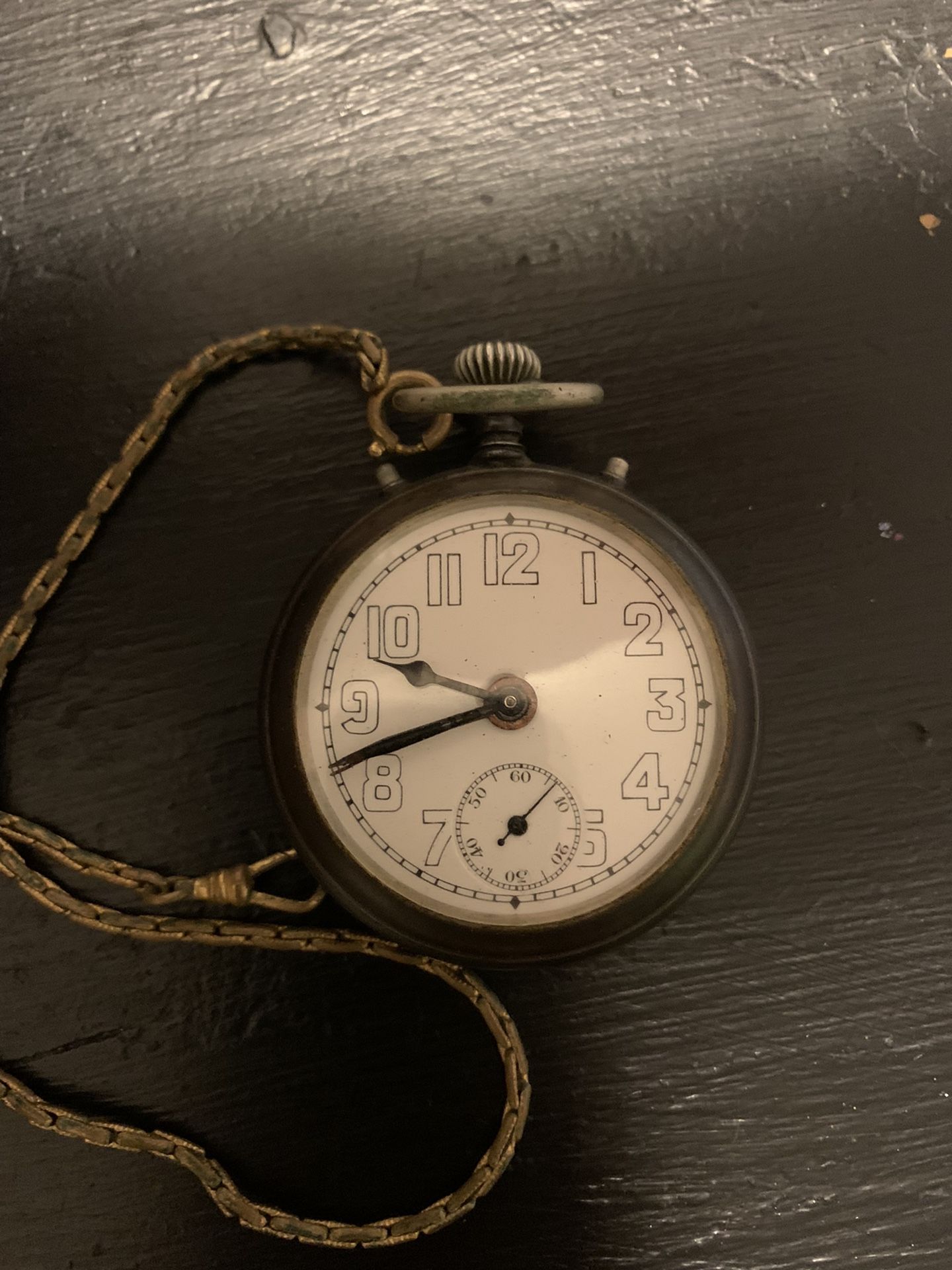 Junghans alarm pocketwatch in a 52mm case with a gold chain.