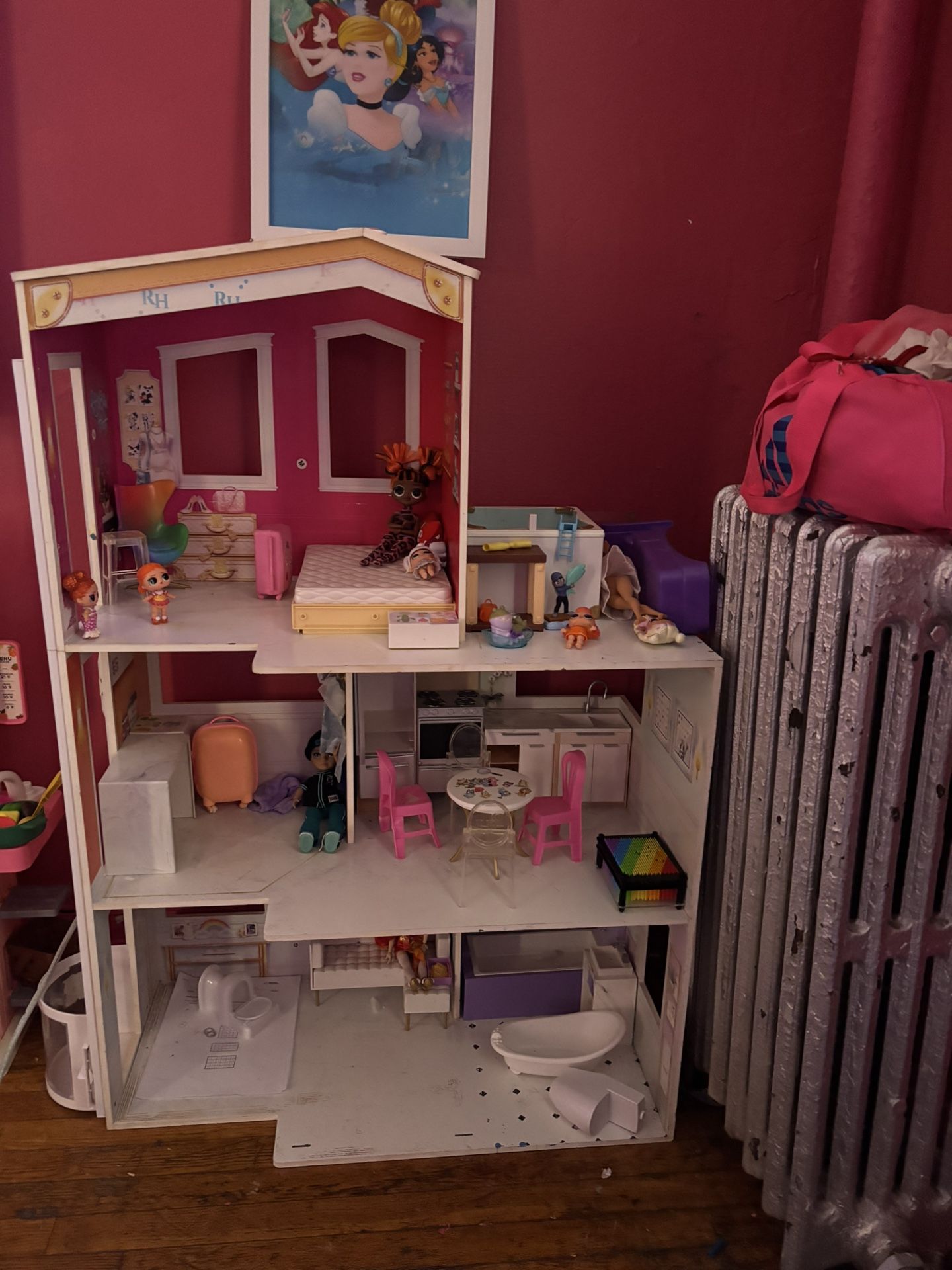 I’m in the process of moving and my daughter no longer plays with this dollhouse. I spent over $300 on it but obviously I wouldn’t charge anyone that. Best offer and it’s yours. It’s wooden and it’s all nailed together so you would have to pick it up. It’s basically still new. It’s been in the same place for a while and it gets cleaned daily.