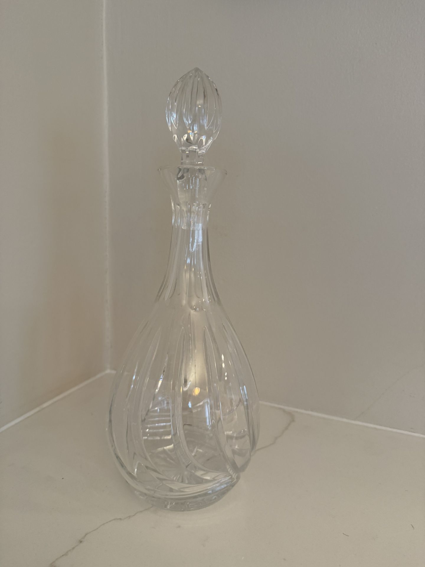 Beautiful crystal decanter featuring rib/cut glass design. Ideal for serving or storing wine or spirits.