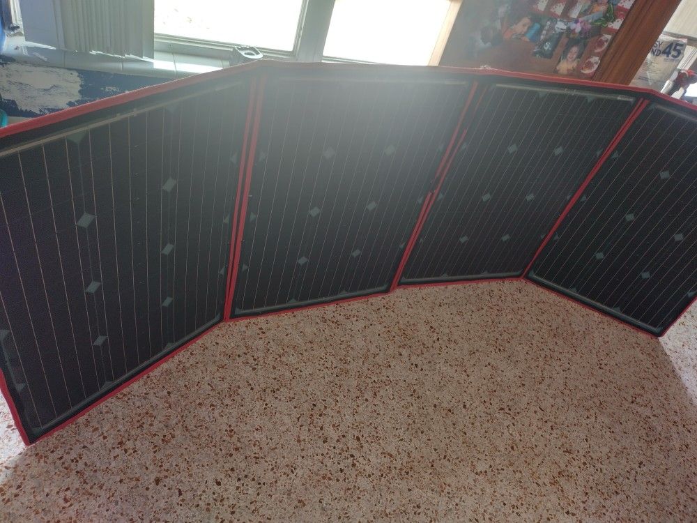 Foldable mobile RV camper camping solar panel 220 q good condition w/ cable