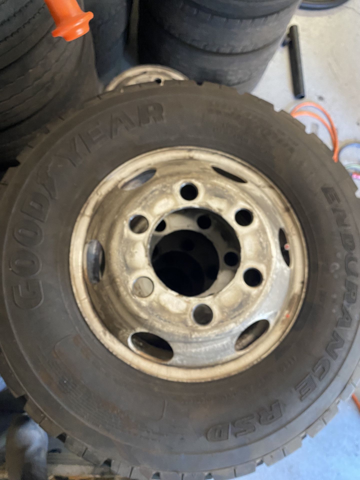 Selling a set of Goodyear Endurance RSD LT215/85R16 Load Range E truck tires with steel rims — previously used on FedEx fleet/repair trucks. Details: • Tire Size: LT215/85R16 • Load Range: E (10-ply rated) • Brand: Goodyear • Model: Endurance RSD (Regional Service Drive) • Condition: Used but in solid shape — deep tread left on most tires (see photos). • Rim Type: Heavy-duty steel rims included (8-lug, fits many 3/4-ton and 1-ton trucks). • Fitment: Compatible with trucks and vans such as Ford F-250/F-350, Chevy Silverado 2500/3500, GMC Sierra 2500/3500, Dodge Ram 2500/3500, and similar 16-inch wheel setups. Perfect for: Work trucks, trailers, farm vehicles, or anyone needing reliable heavy-duty tires at a great price. ⸻ 💰 Price: $150 each or $500 set of 4 (negotiable) 📍 Location: Sacramento, CA 📞 Contact: Message me directly or text (contact info removed)