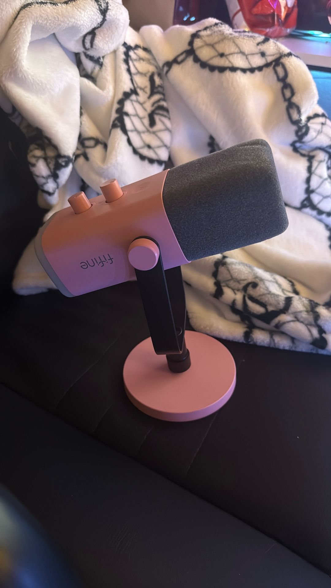 Fifine wired microphone, works with any device. Volume adjuster and Mic volume adjuster
