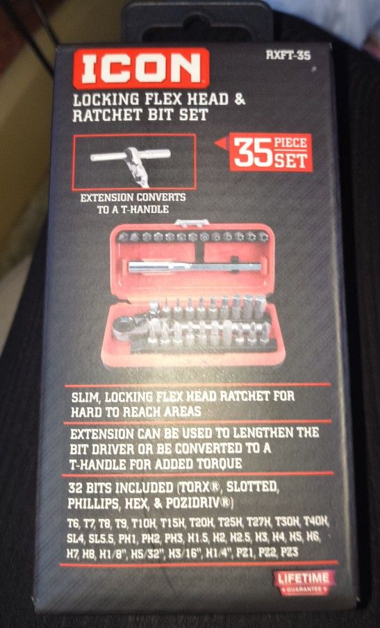 I have a brand new still in the box icon 35-piece set locking flex head ratchet bit set nothing wrong with the whatsoever if you have any questions feel free to message me thank you