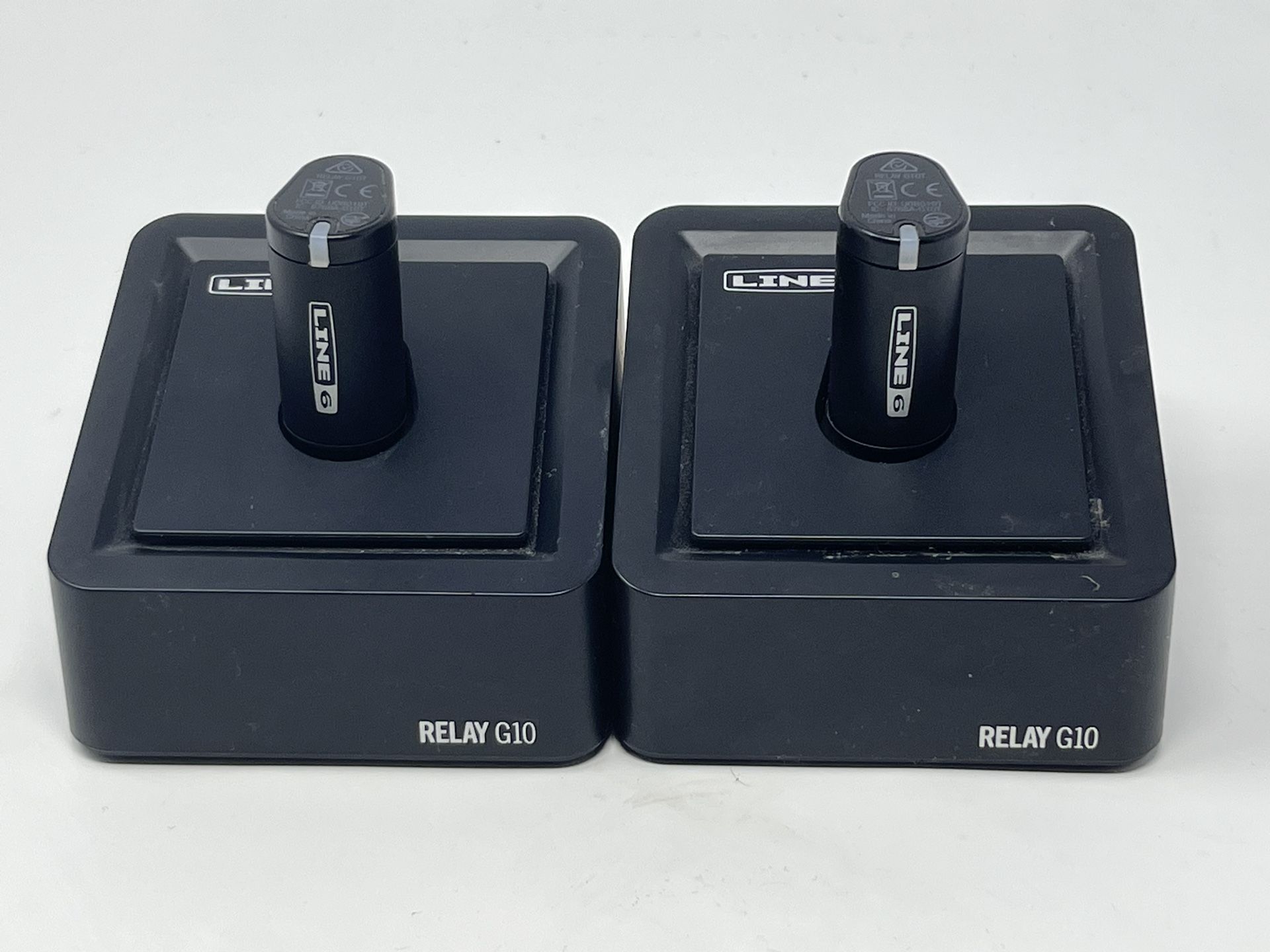 Two Line 6 Relay G10 Digital Wireless Guitar Systems. These units are designed to deliver reliable, high-quality wireless performance for guitarists, bassists, and other musicians seeking freedom on stage or in the studio. Brand: Line 6 Model: Relay G10 Form Factor: Hanging Microphone / Wireless System Connectivity: Wireless (2.4 GHz license-free band) Transducer Type: Dynamic Color: Black Suitable For: Live Performance, Home Recording, Broadcasting Condition: Both units have been tested and are fully functional. Both cords are present; however, one cord does not have the plug-in outlet attachment. Aside from this, the systems are in good working order and ready for use. Features & Technical Specifications: 24-bit uncompressed digital transmission for clear, lossless sound Frequency band: 2.4 GHz, designed to minimize interference Range: Up to 50 feet indoors Automatic channel setup: Plug in and play, no manual configuration needed Rechargeable transmitter: Charges by docking directly on the receiver Battery life: Up to 6 hours of continuous play, with up to 150 hours in sleep mode “No-pop” audio mute: Ensures audio only passes when the transmitter is fully plugged in Compact design: Easy to mount and transport Output Wattage: 23.2 watts Included: 2 Line 6 Relay G10 units 2 cords (one missing plug-in outlet attachment as noted)