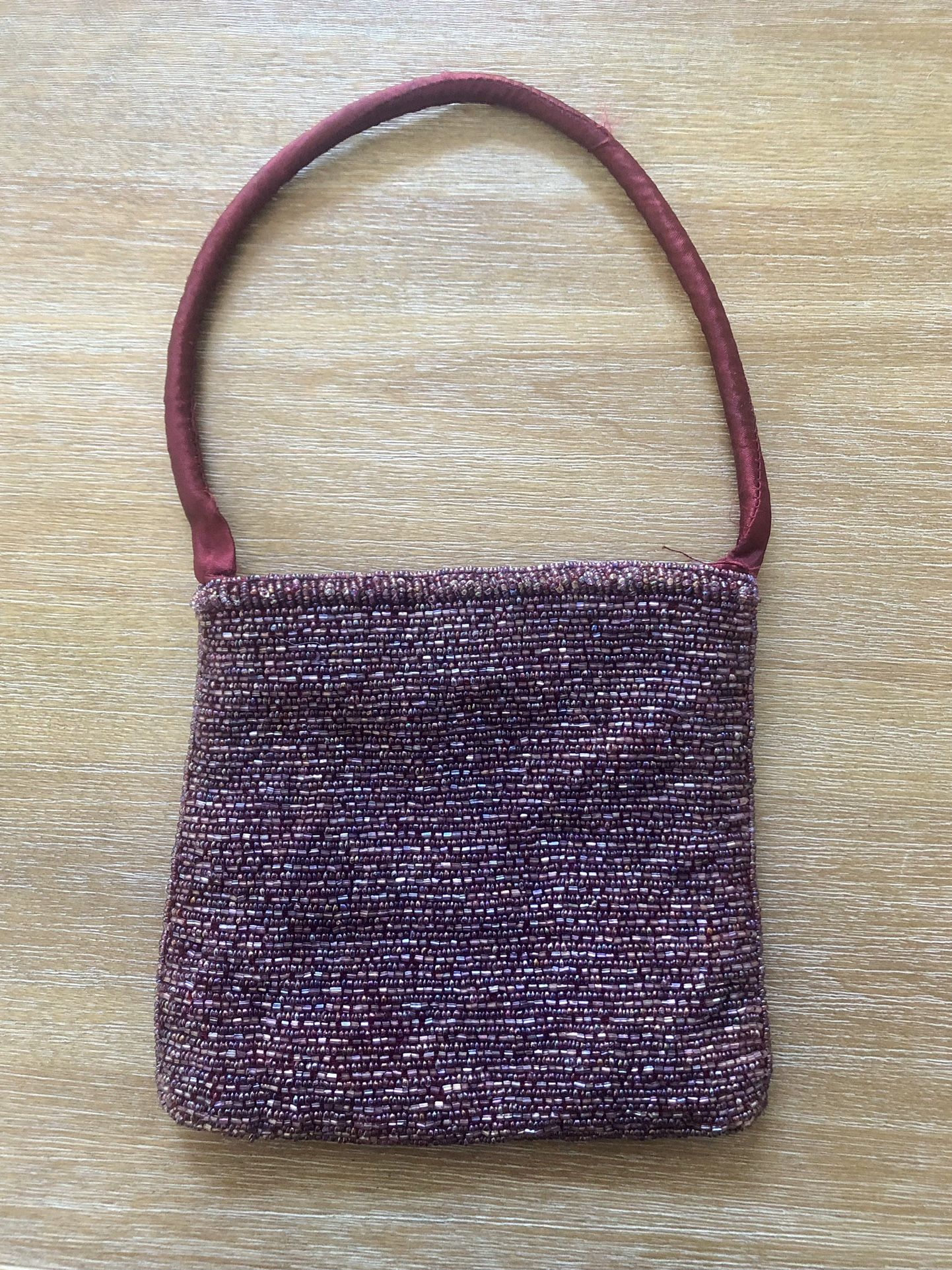 Alexia Crawford elegant beaded handbag wine color, perfect for your cell, lips & a card inside magnet snap & fabric logo tag 6.6”Wx6”H pick up in Palm Beach Gardens or Palm Coast purse bag pocketbook