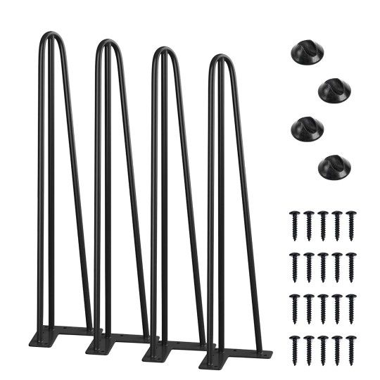 24" Metal Hairpin Coffee Table Legs, 1/2" 3 Solid Rods, Industrial Home DIY Projects for Furniture, Bench, Dining Board, Desk, High-Stand with Rubber