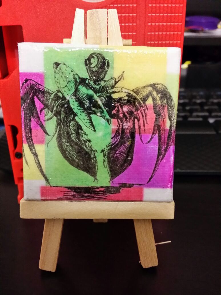 Stand at 5in with a 2 1/2 x 2 1/2 canvas, original artwork created by aced2112,they are hand made creations, nice for desk top or work place desk.Follow me on instagram @aced2112