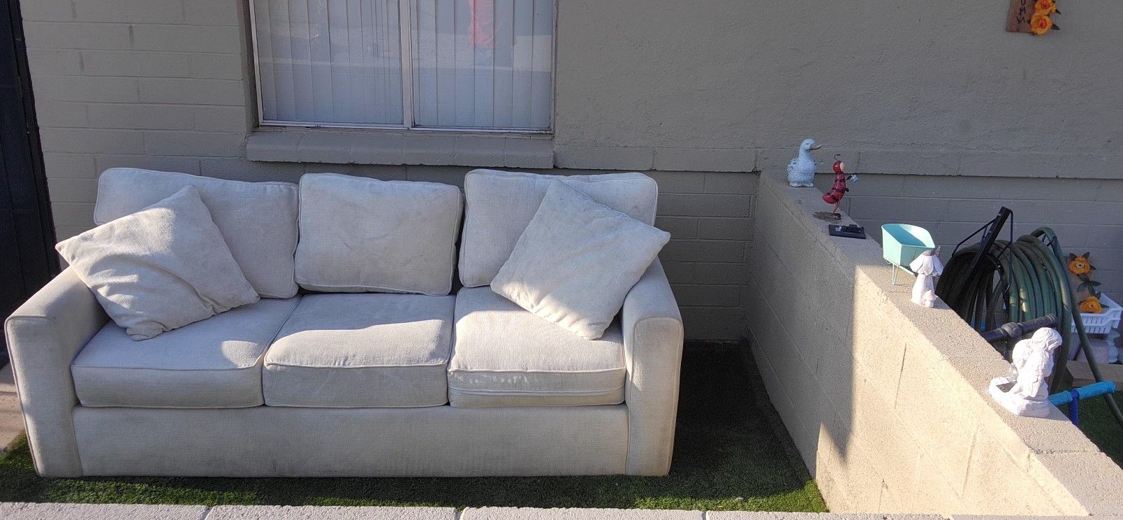 White love seat couch. Slightly used. Just needs light clean. Firm cushions and pillow. Asking $125 OBO