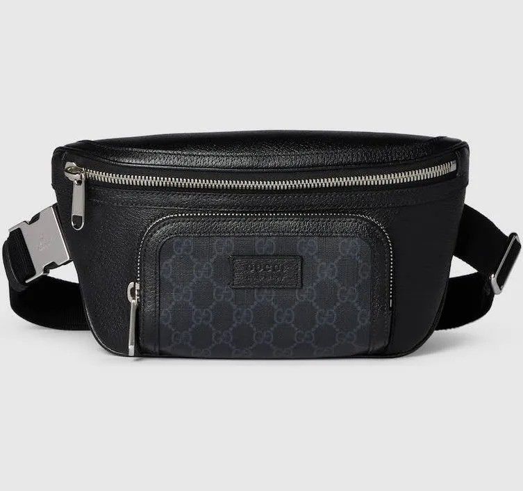 Authentic gucci. Bought at the Bravern in Bellevue. Have receipt and box and bag cover. Bought it for husband but he never uses it. Make an offer Made in Italy black calf leather pebbled texture GG Supreme canvas trim adjustable waist strap main compartment internal logo patch silver-tone hardware Outer: Calf Leather 100%