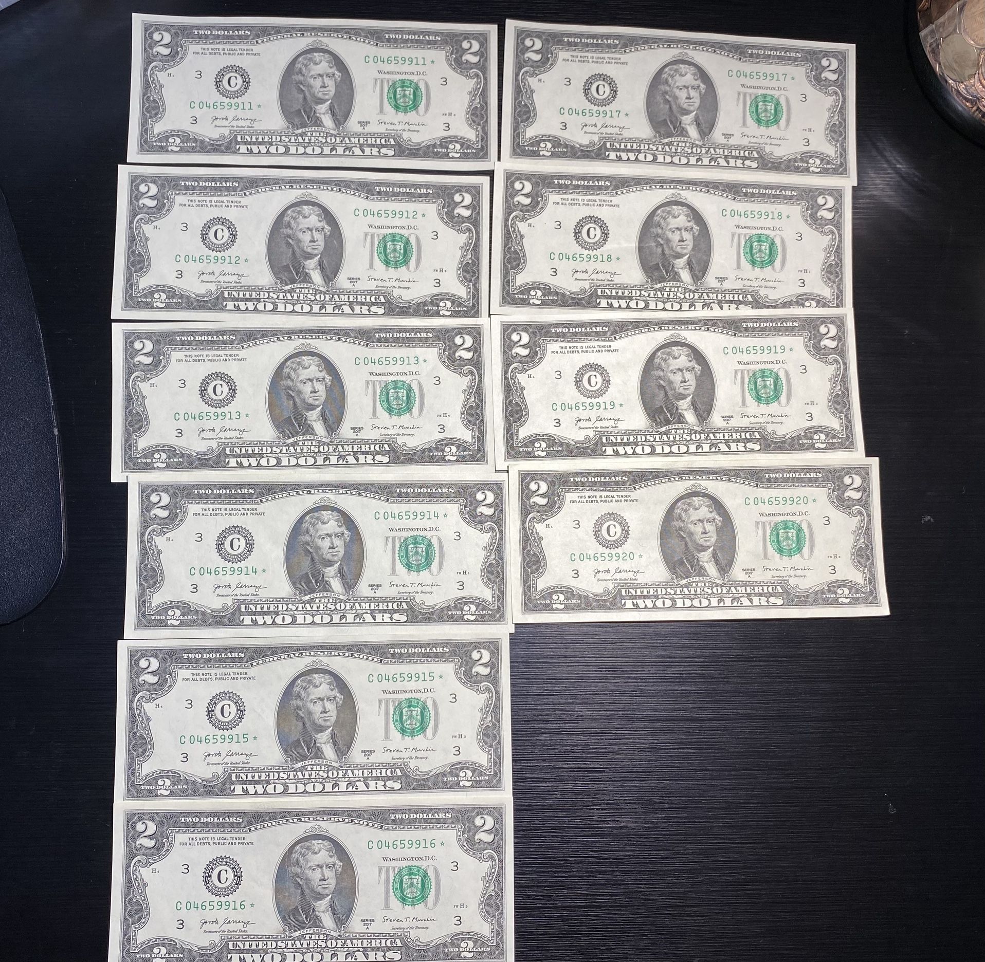 $2 Sequential Star Notes. Uncirculated still crisp