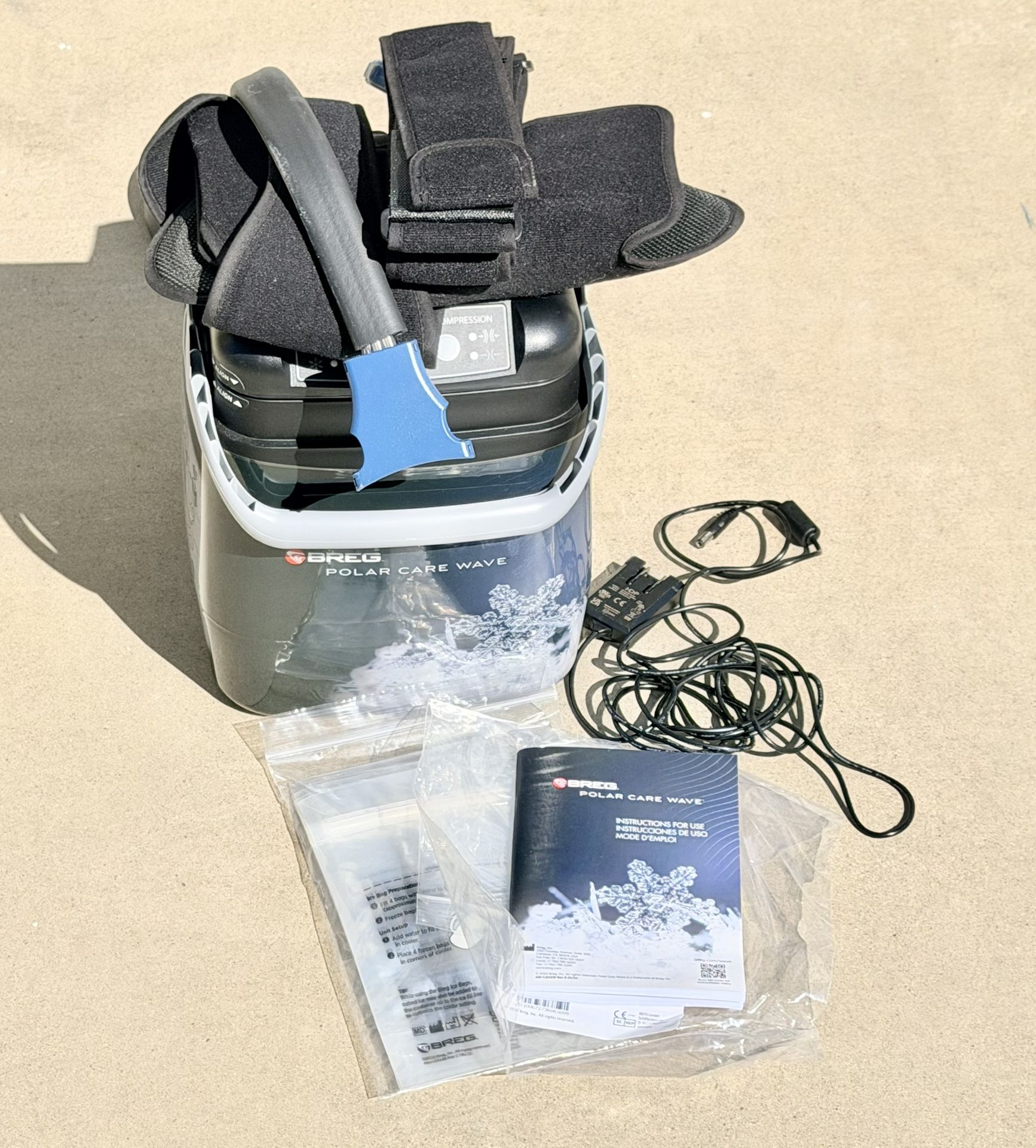 Breg Polar Care Wave cold therapy system. Includes: • Polar Care Wave unit • Universal cold compression pad • Power adapter • Instruction manual • Wrap on shoulder Fully functional and clean.
