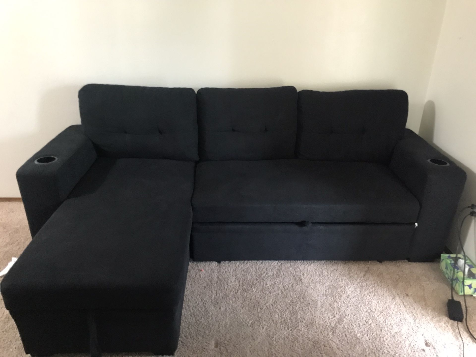 In great condition basically brand new need gone asap moving Very comfy had cup holders on each side of couch I got it for 500$ selling for 350 great deal!