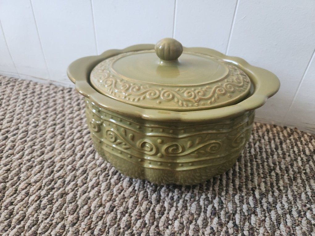 Celebrating Home Stoneware Collection Venetian Green Ceramic Casserole Dish/Bean Pot.