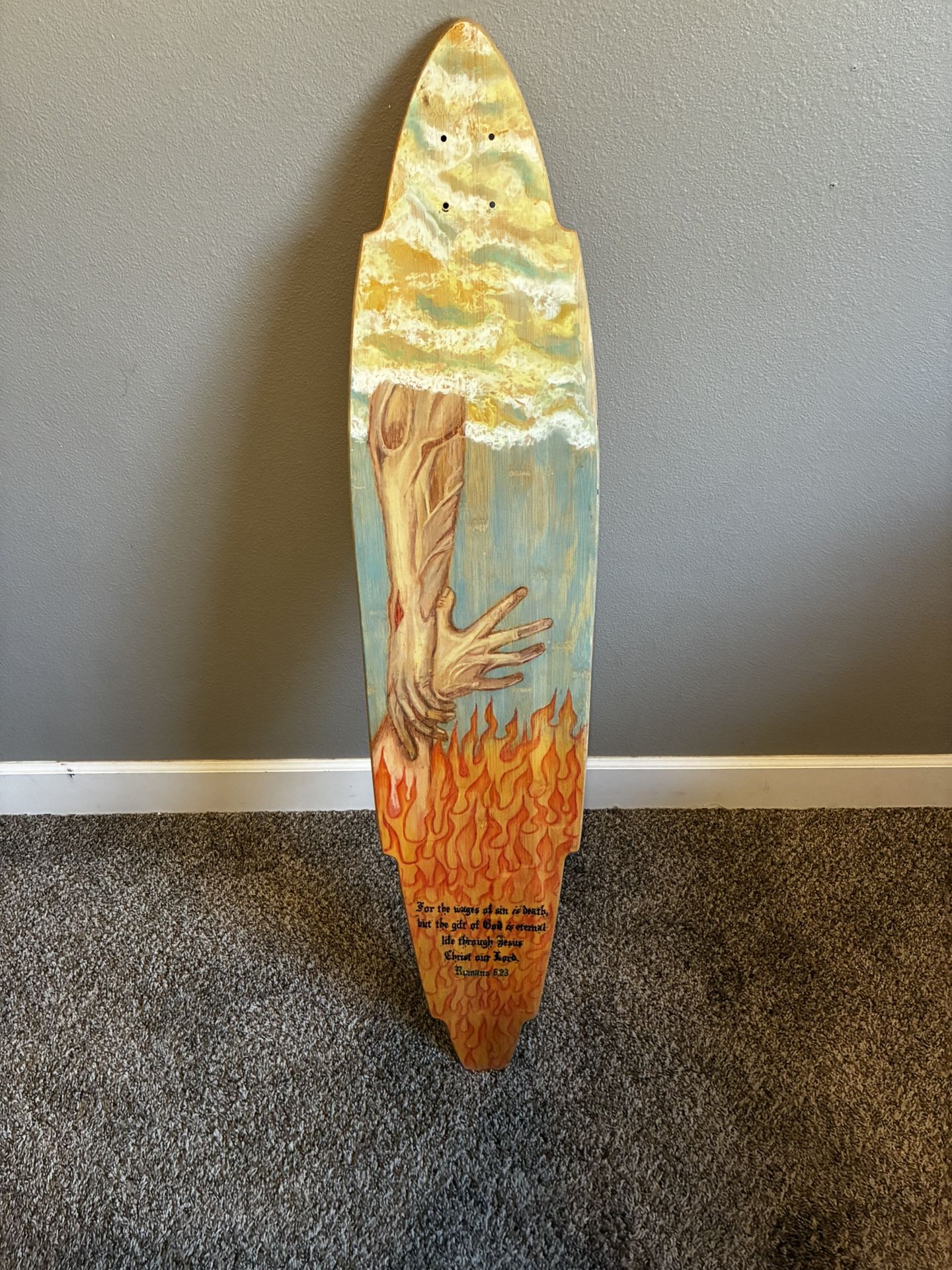 Bamboo deck was given to me by family friends, it has a bible verse and cool picture. Selling so that I can buy Christmas gifts.