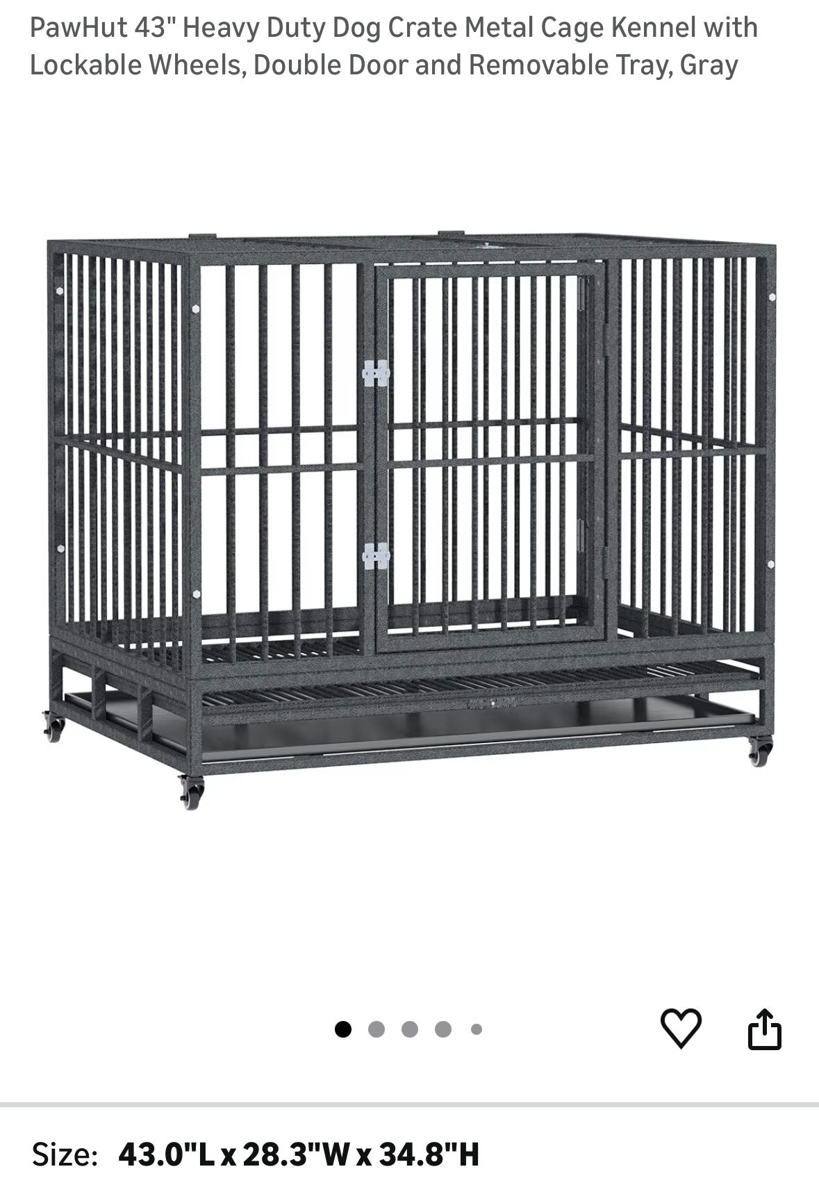 Heavy duty and Used for a very large husky/shepherd mix. 43.0"L x 28.3"W x 34.8"H Pickup in East Hollywood