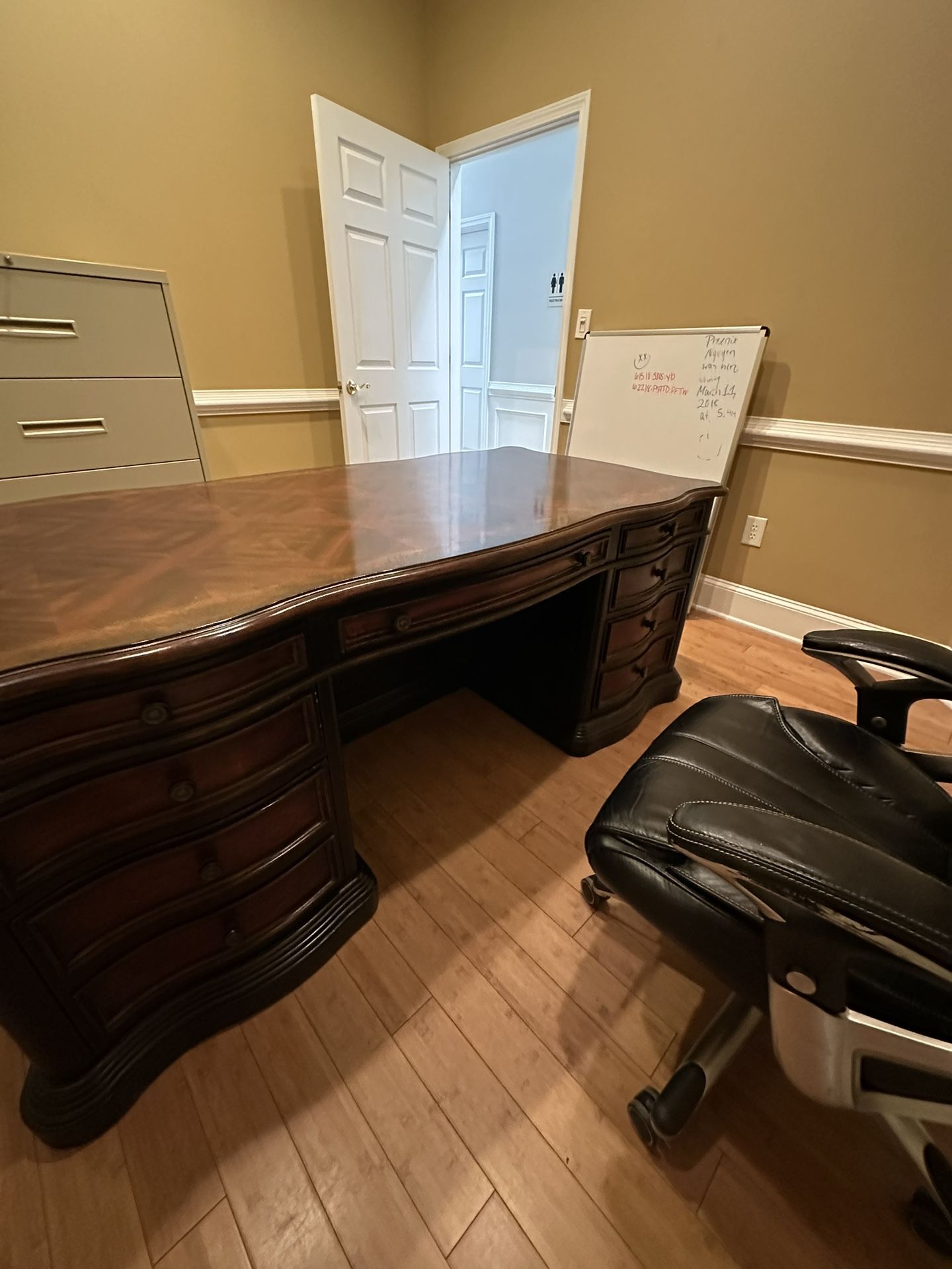 Brown Brookhaven Executive Desk. Excellent condition. Nine full extension drawers. Two letter drawers for letters or legal files. Center drawer is a drop-front for use with keyboard. Retails new for over $5,000. Asking $500 OBO. Must have truck to take delivery.