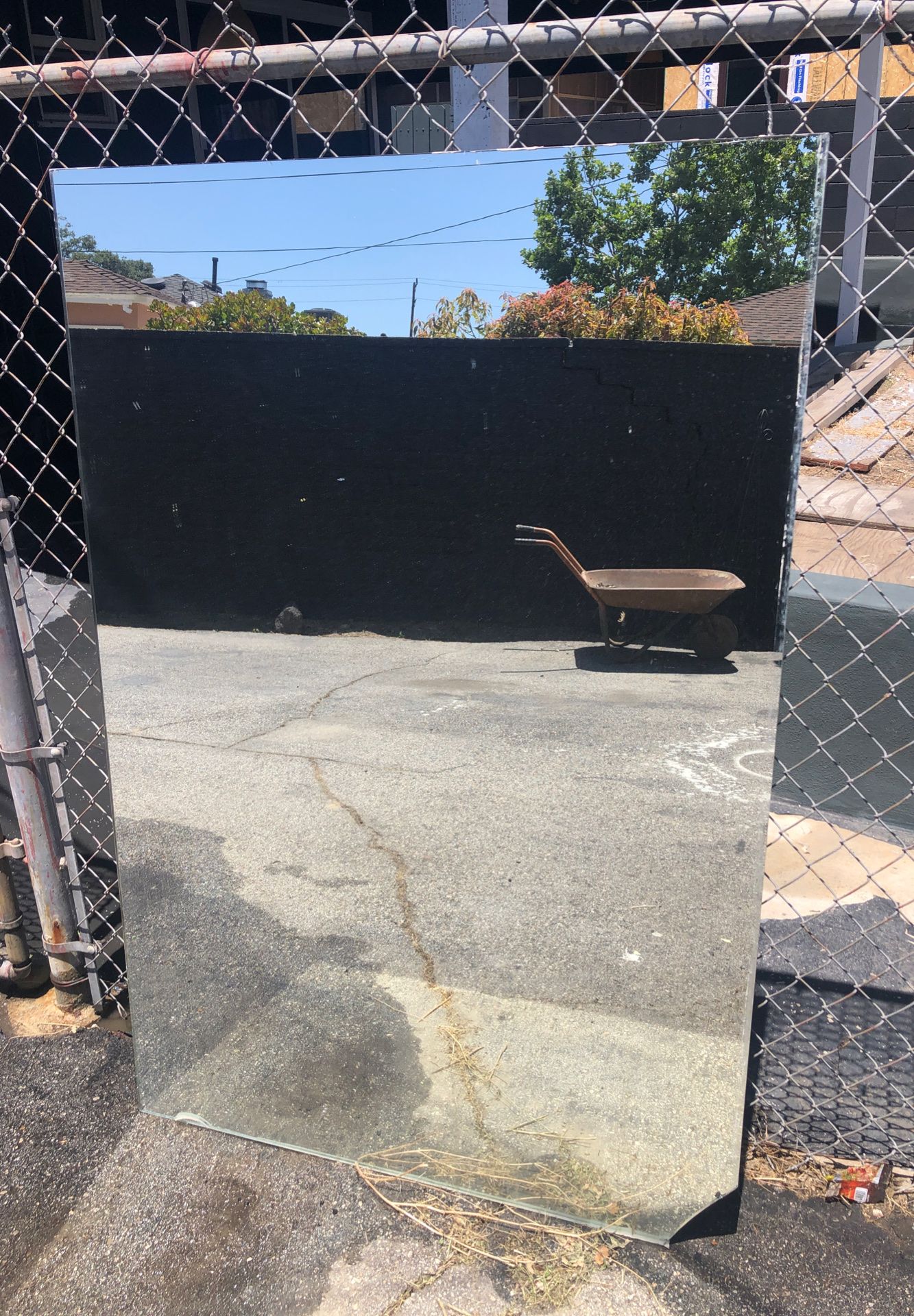 Mirror glass 4ft by 3ft . Has a chip of about 3 inch on the corner.