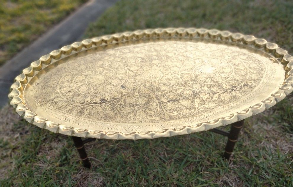 Vintage Solid Brass Engraved Coffee Table or Wall Mount