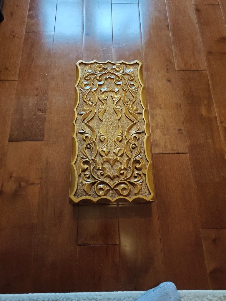 Beautiful handcrafted wooden backgammon board, never used and in good new condition despite being over 20 years old. Carefully stored and preserved. Features detailed craftsmanship and perfect as a collector's item, gift, or for regular play. Includes: full set of game pieces, no dice
