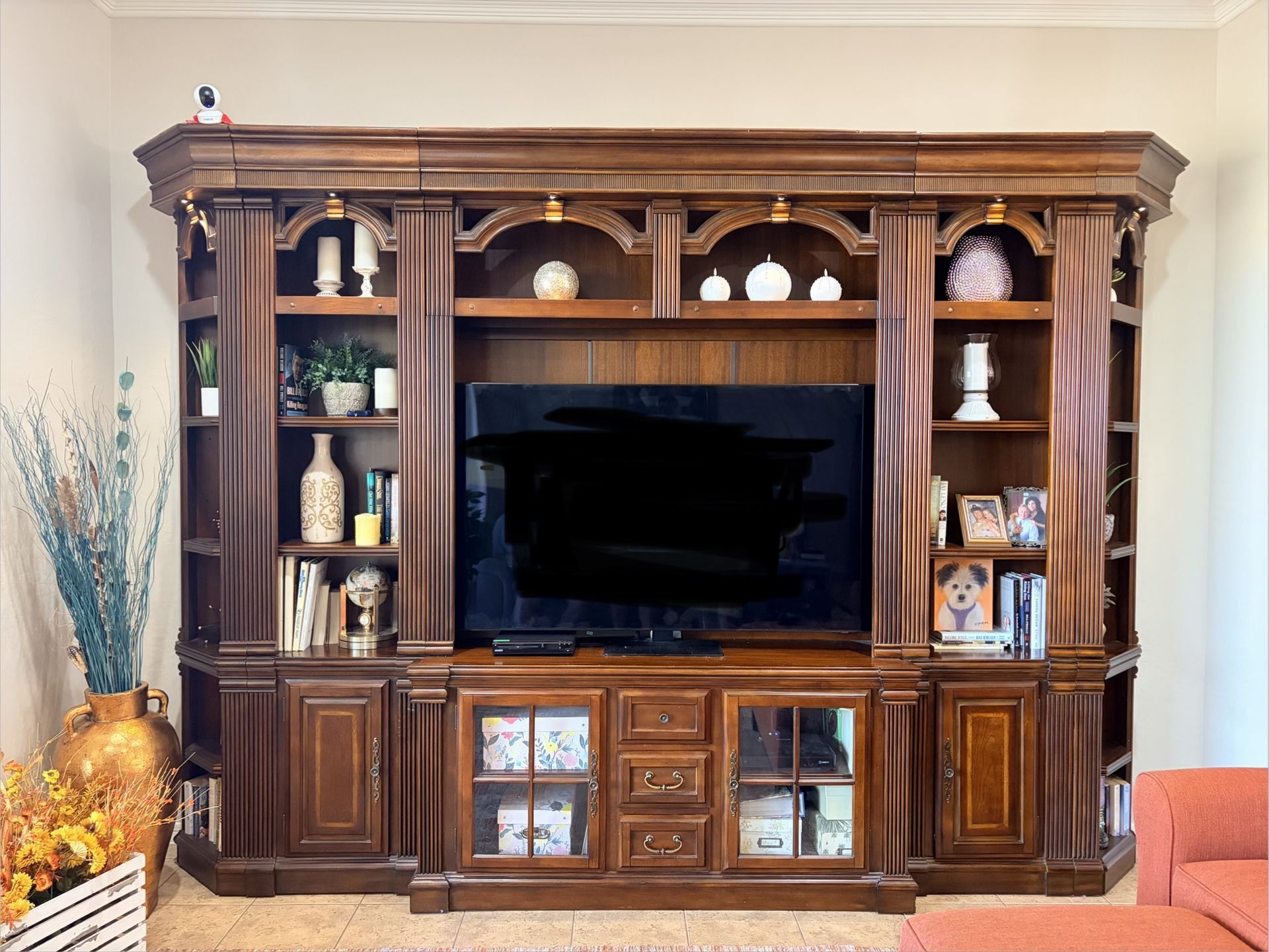 Entertainment Center: $1800 65” TV is separate purchase Parker House” brand …(price was $5100 new) 94 inches high and total width is 129 inches. Mahogany wood and includes all lighting above shelves. It is in five different pieces. CASH only. No Venmo, PayPal or Zelle. pick up in Sun City West - 303 and El Mirage Road
