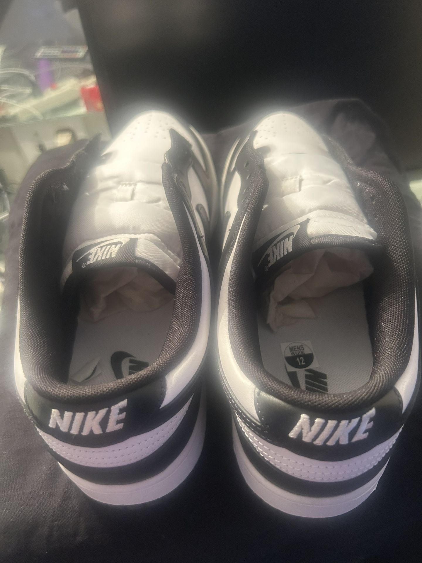 Nike Dunk Low “Panda” in black and white. Clean, classic colorway that goes with everything. Very popular everyday sneaker