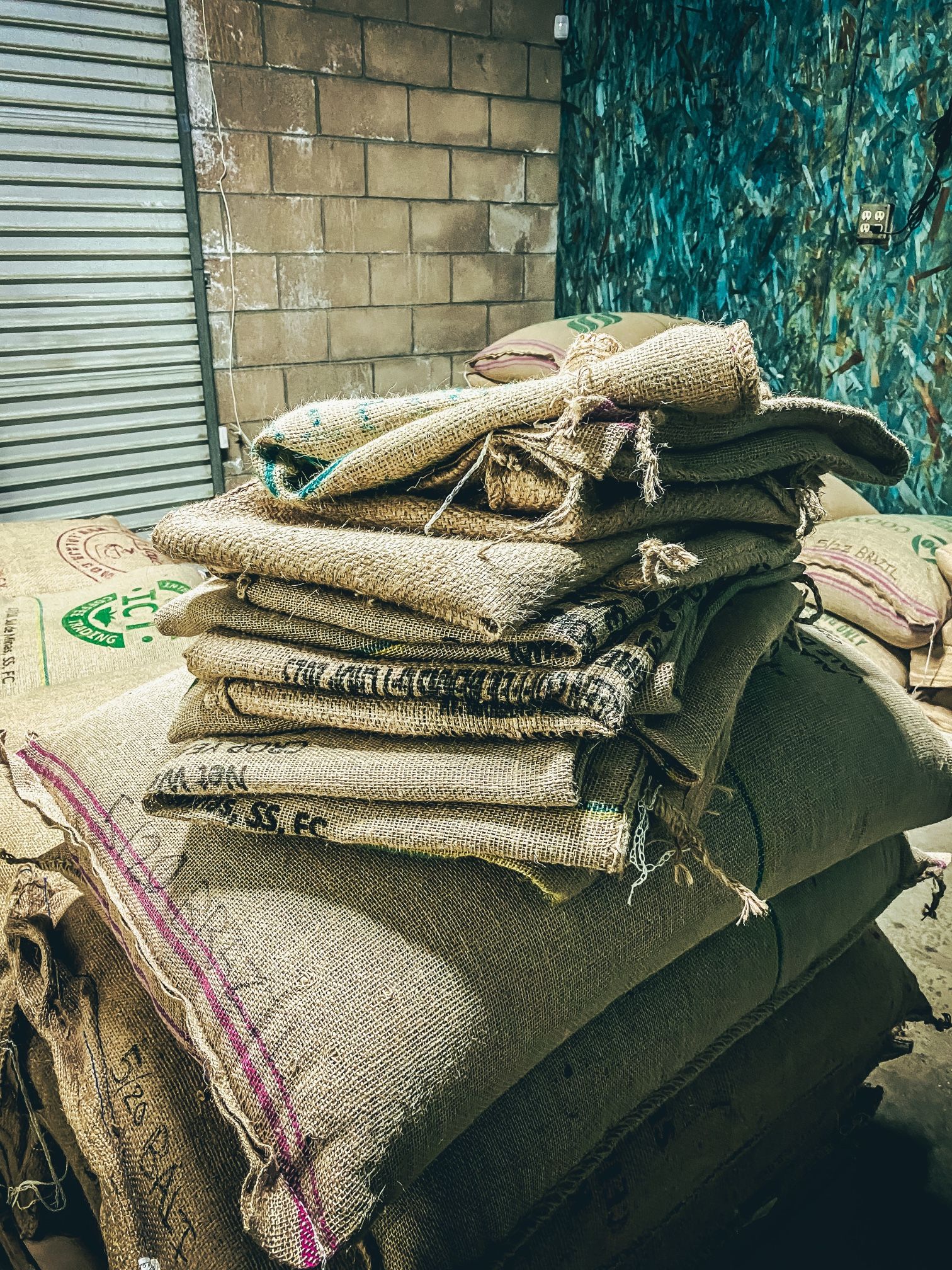 Burlap coffee bags, sacks. I have more that are not in the photos. Asking $2 per bag.