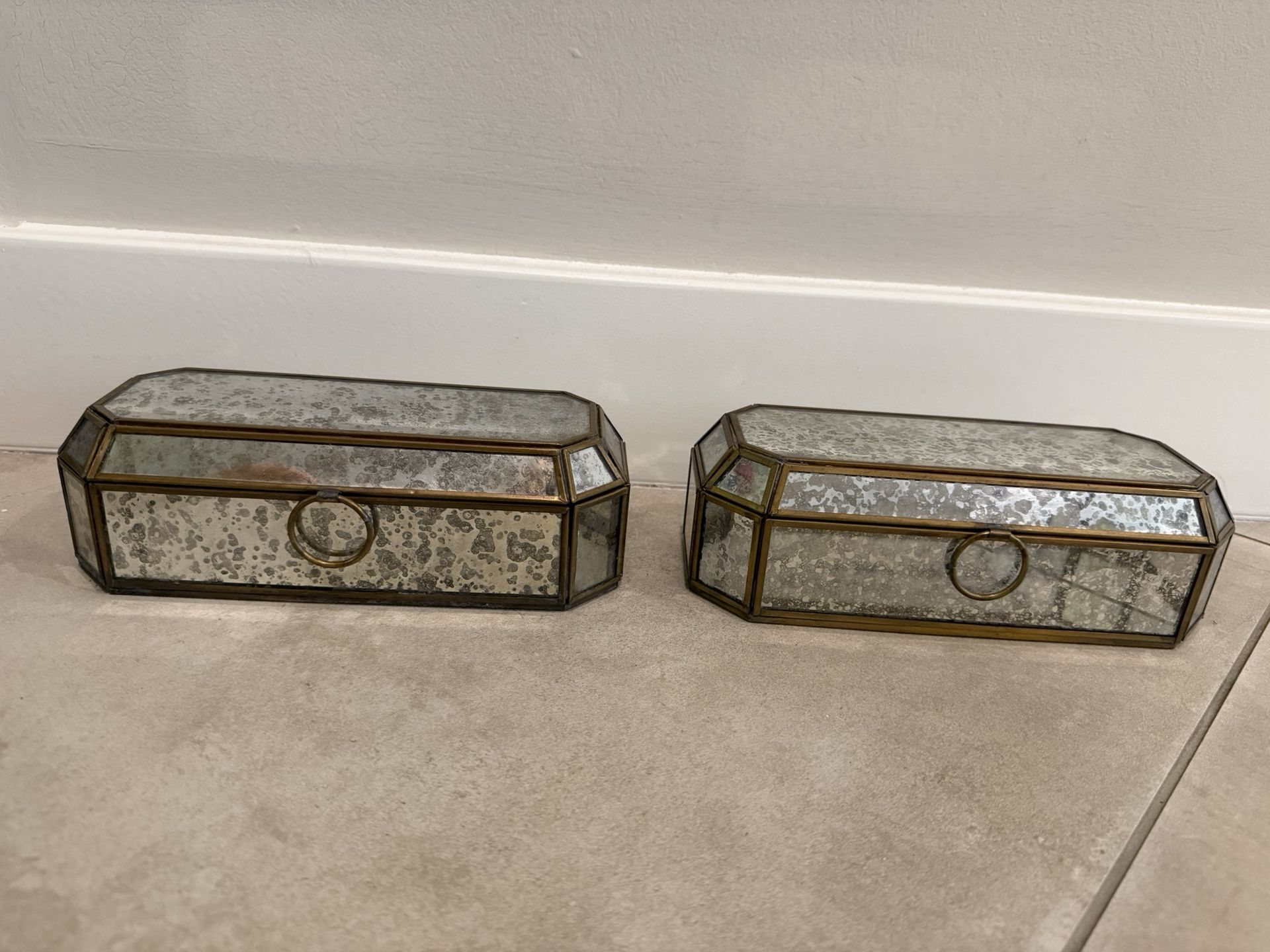 Antiqued Glass Mirror Jewelry Boxes – Pair