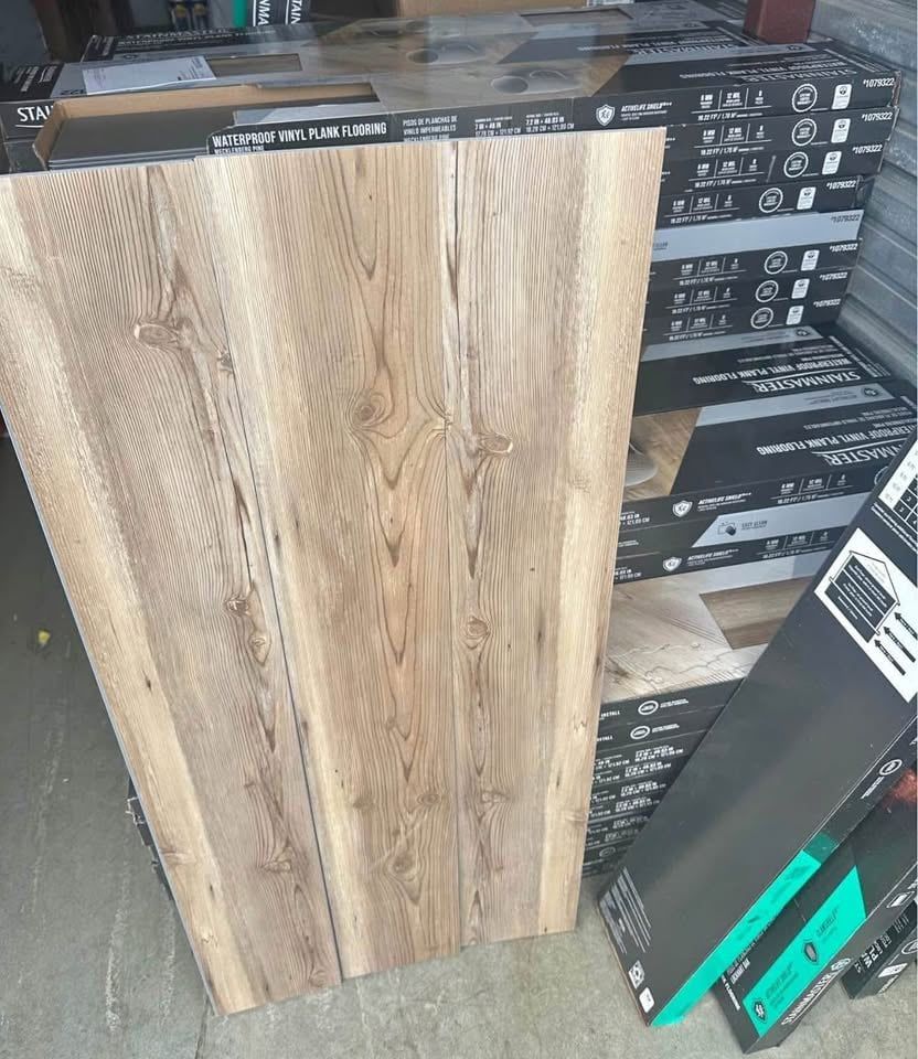 Having about 137 cases available 2633 sqft Price $45/box Retail price: $65/ box at lowes 10% OFF for taking all stock ! Let me know any update and questions you have STAINMASTER Mecklenberg Pine 12-mil x 7-in W x 48-in L Waterproof Luxury Vinyl Plank Flooring ( 19.22-sq ft Carton ) Brand new, unopened boxes of STAINMASTER Mecklenberg Pine Waterproof Luxury Vinyl Plank Flooring. Durable, stylish, and easy to install — great for any room in your home. Product Details: • Brand: STAINMASTER • Style: Mecklenberg Pine • Wear Layer: 12-mil • Plank Size: 7 in. W × 48 in. L • Coverage: 19.22 sq ft per carton • Waterproof – ideal for kitchens, bathrooms, and basements • Scratch & scuff resistant • Click-lock floating installation system • Pet & kid friendly