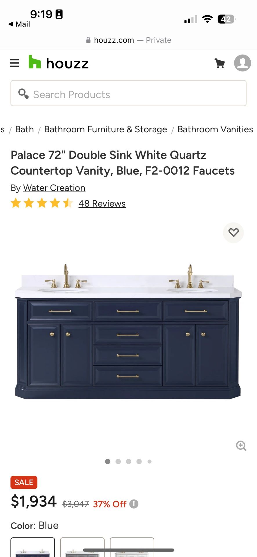 Palace 72" Double Sink White Quartz Countertop Vanity, Blue, F2-0012 Faucets