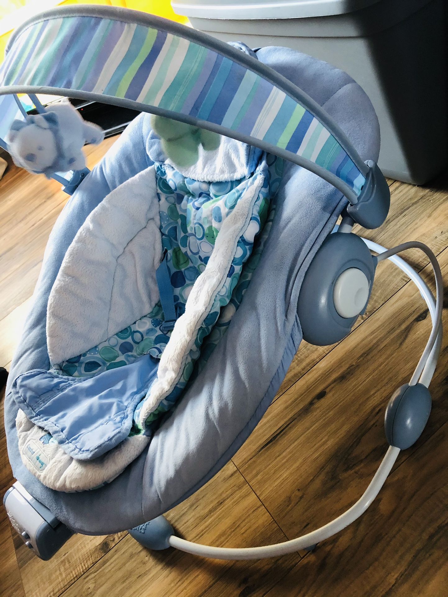 Easy to put together, super cute, quality made and has it all. Pretty lights, mobile, music and frog and water sounds, vibrates, easy to bounce and super soft. Plus the bunny comes off to do tummy time with. My one month old daughter loves it.