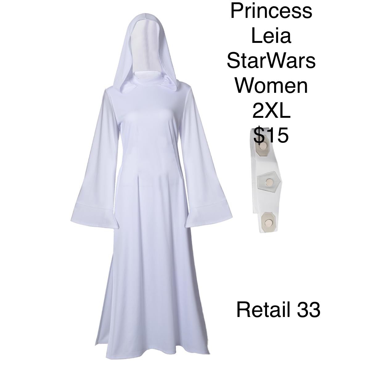 Princess Leia Star Wars Dress Women’s Costume Cosplay 2XL Retail /Precio de venta publico $33 (to compare savings) But you pay the discounted price in listing , not retail. You can pick up in north Houston or I can ship for $5. Lots more costumes on my marketplace . Or at https://offerup.com/redirect/?o=ZmIuY29tL2NyZWVwaW5nY29zdHVtZXM= Lo puedes levantar en lado Norte de Houston o Puedo mandar por correo por $5. Tengo mucho mas en esta cuenta de marketplace o en https://offerup.com/redirect/?o=ZmIuY29tL2NyZWVwaW5nY29zdHVtZXM=