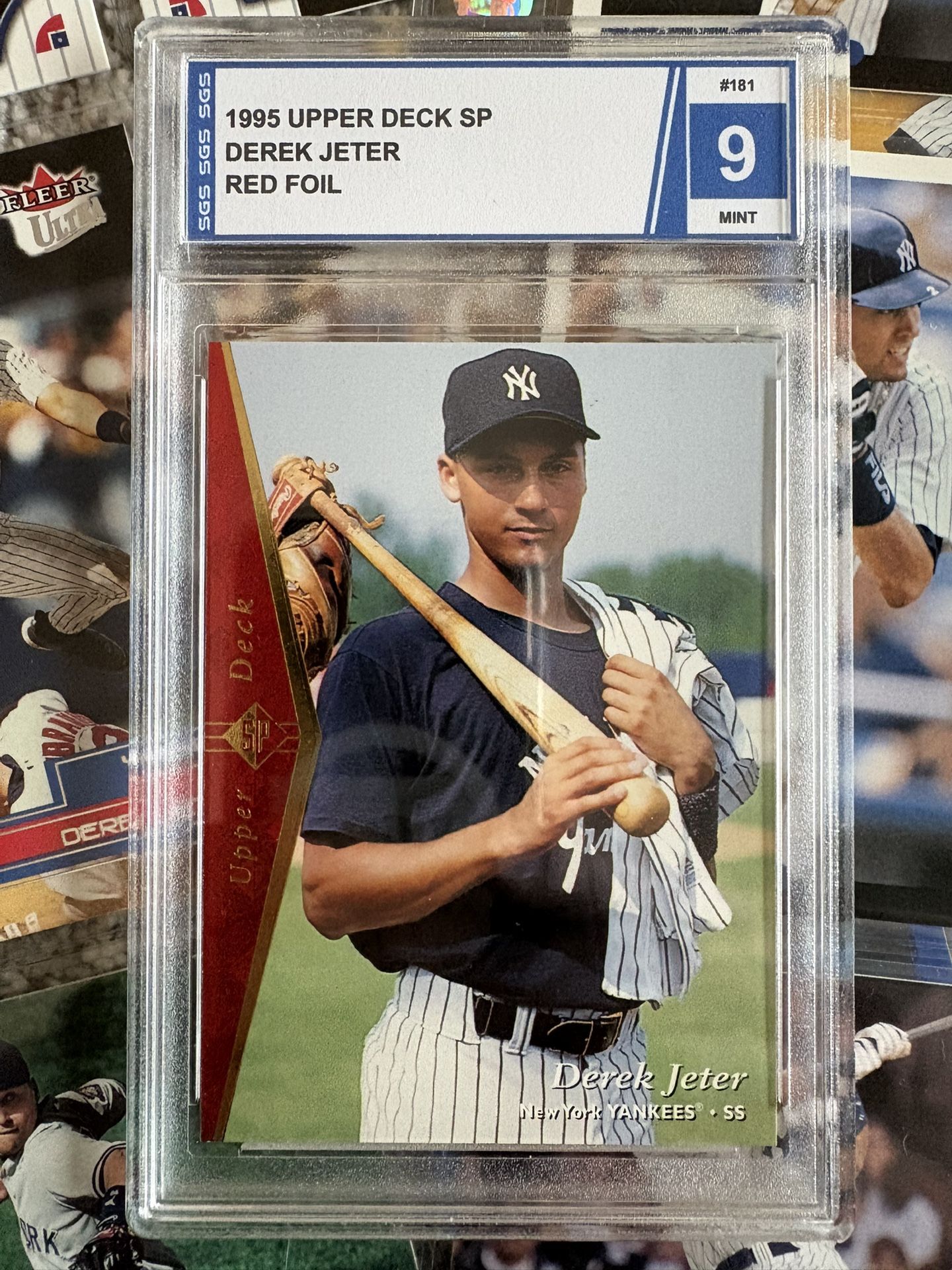 Derek Jeter baseball cards, 119. Cards of note include: very rare 1999 pacific omega blue parallel #8/75. Graded and un-graded 1992 classic 4 sport. 1995 sp graded 9. 1999 pacific blue parallel, limited to 75. 2 fleer 1995 in excellent condition. 1 upper deck 1994. Remainder of cards range from good to excellent condition. For local pickup or shipping. I am open to offers.
