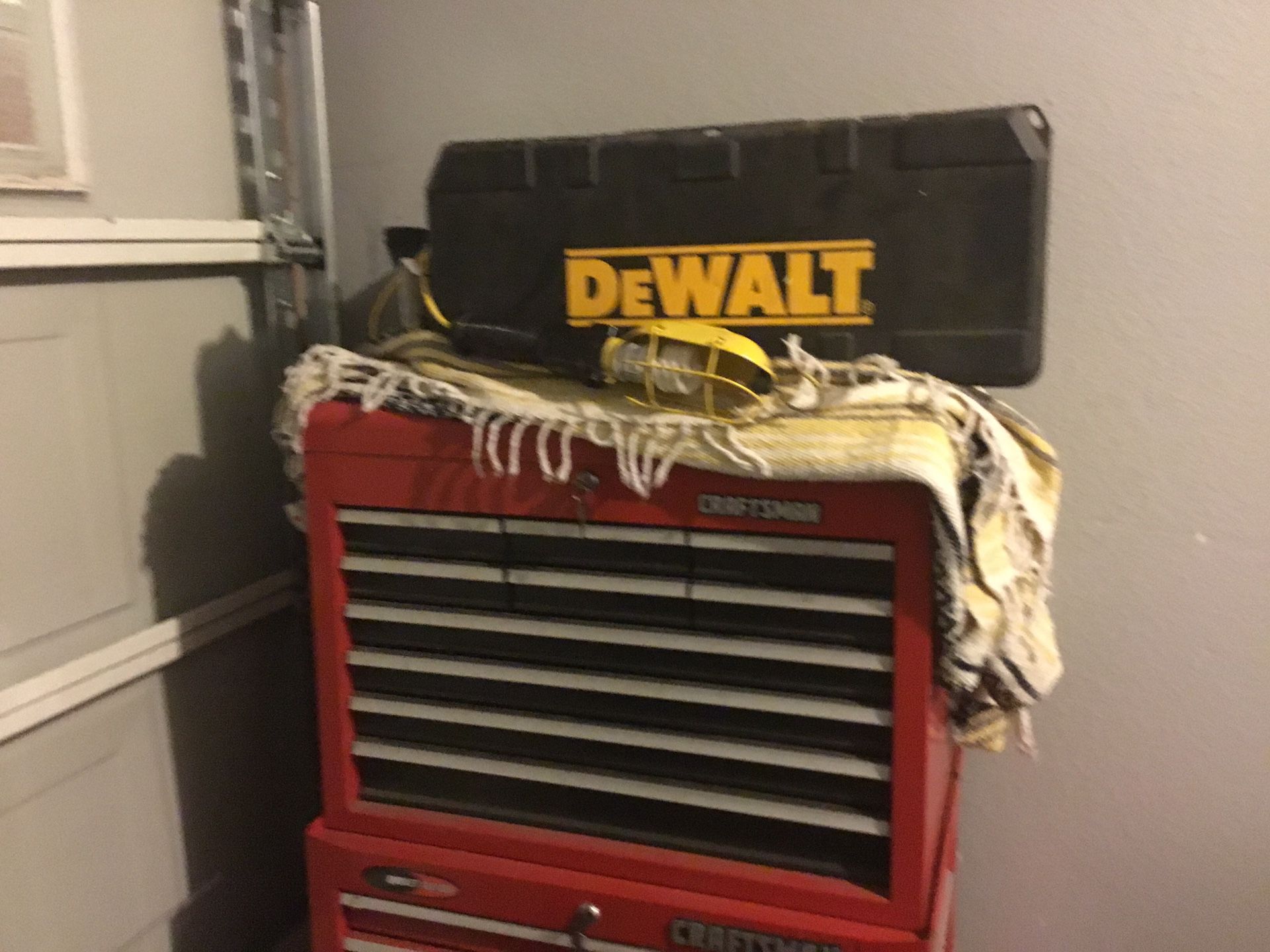 Craftsman tool boxes with tools , Dewalt saw and craftsman work light