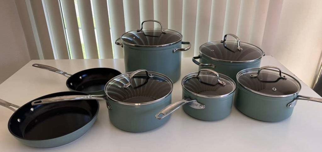 Nuwave 12pc Forged Lightweight Cookware Set, G10 Healthy Duralon Ceramic Ultra Non-Stick Coating, Vented Tempered Glass Lids, Stay-Cool Handles, Induc