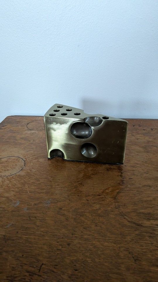 Add some personality to your space with this unique metal Swiss‑cheese–style sculpture. It’s solid, eye‑catching, and works great as a decorative accent, paperweight, or conversation piece. The polished metal finish gives it a modern, industrial look while the playful cheese‑wedge design keeps it fun. Details - Solid metal construction - Polished finish - Great for office desks, shelves, or modern décor - In excellent condition Perfect for anyone who loves quirky art, industrial décor, or unique desk accessories. Pickup only. Cash or digital payment accepted.