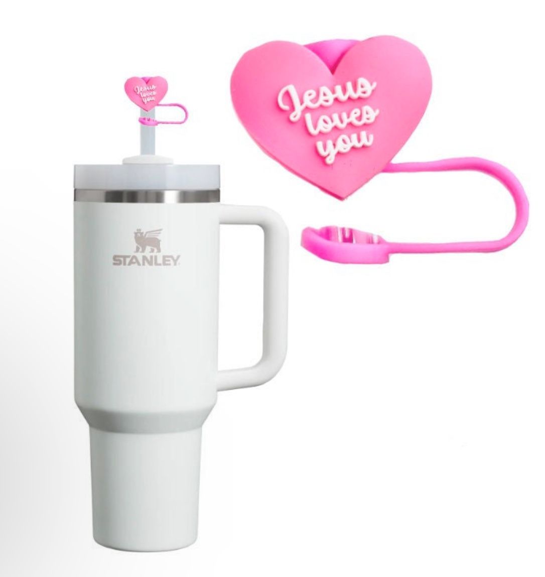 2 Jesus Loves You straw topper covers for tumblers Stanley quencher Thermoflask Starbucks Yeti Simple Modern Reduce Corkcicle Owala Miir