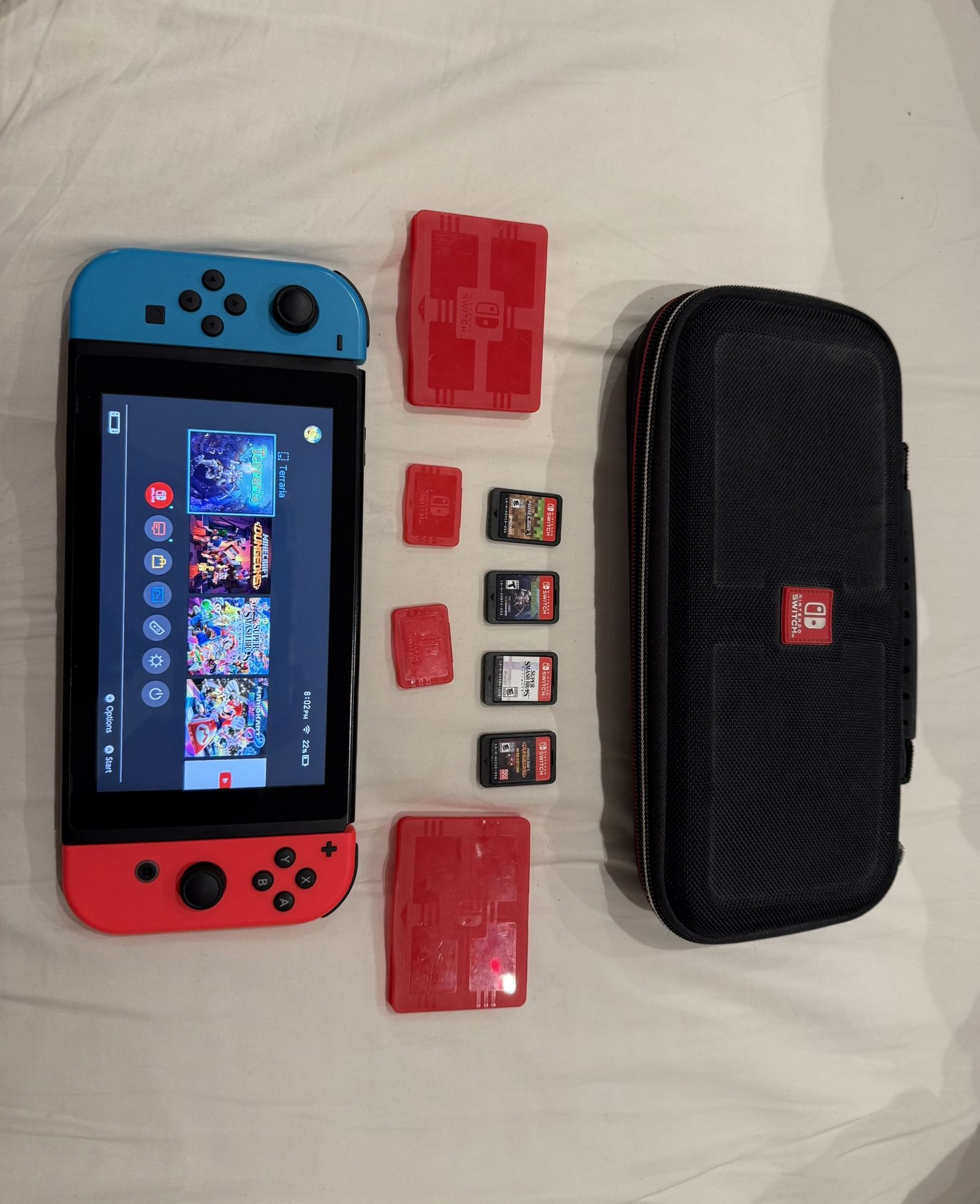 Case included Docking station included Bought in 2020 No scratches Comes with -Minecraft -Super smash bros -Terraria -Minecraft dungeons