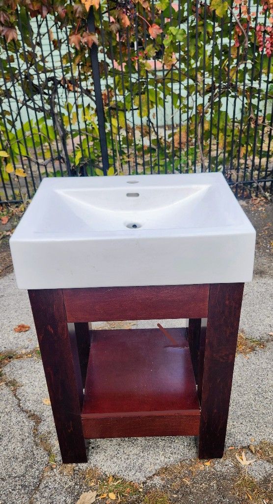 Magick Woods Sonata 23 x 19" Vanity Cabinet w Sink Pick up only in Forest Park. Exact address given only when you commit to purchase. NO REFUNDS or deliveries (except for a cash deposit and fee), no holds. Prices are fair and firm! Serious buyers only, please.
