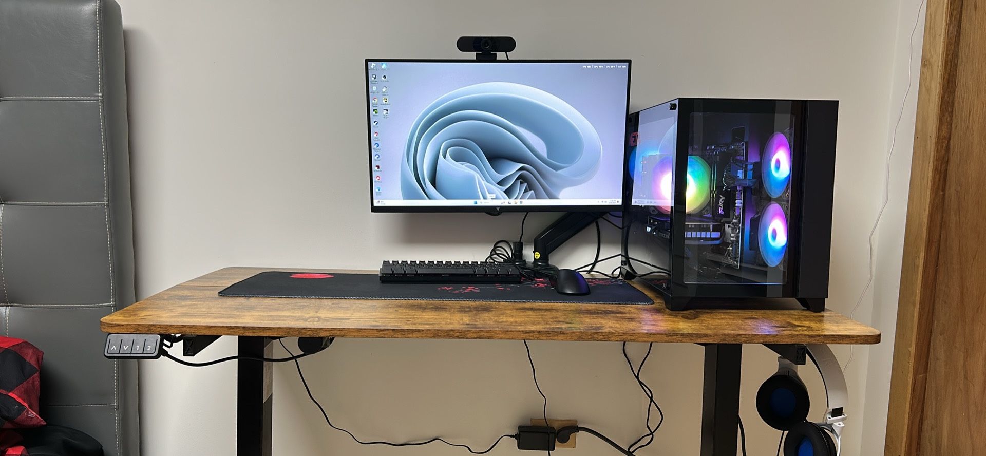 Gaming pc, electric standing desk, 60% huntsmen mini razor gaming keyboard, death-adder razer gaming mouse, 240hz monitor, dual monitor mount, 1080 webcame with microphone, and mouse pad CASH APP ONLY