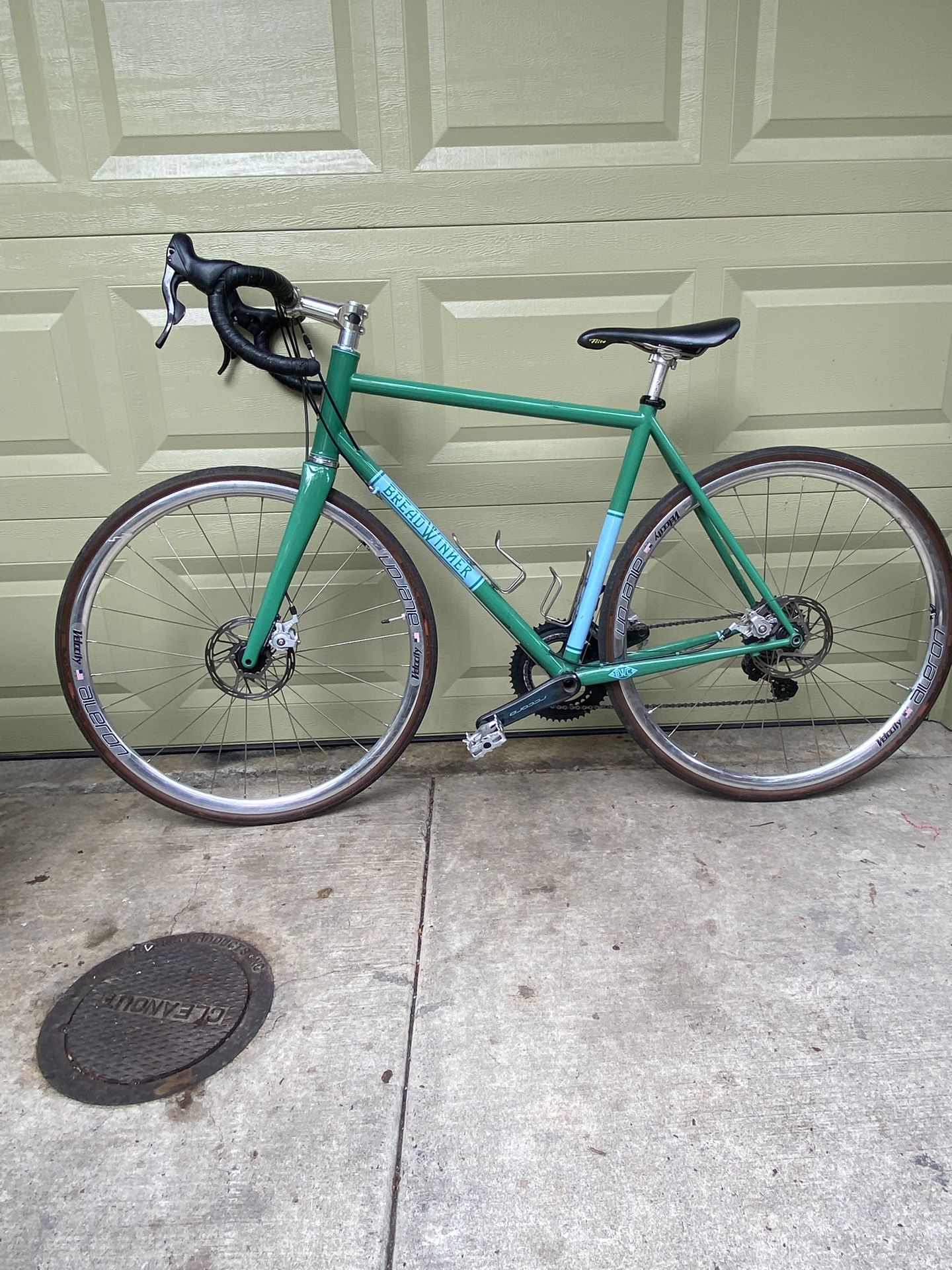 The bike has been road alot with that there's sum scratches nothing major everything works perfectly besides the back brake the it needs a new brake cable. The specs of the bike below It has a aileron velocity wheel set with white industries wheel hubs and sugar pdx spokes. The fork is carbon and the frame is Columbian life tubing which is super LIGHT it has campagnolo record shifer levers and matching crank arms and front and rear derailer. the handle bars are compact enve drop bars The stem is aswell white industries dustries its a very nice bike