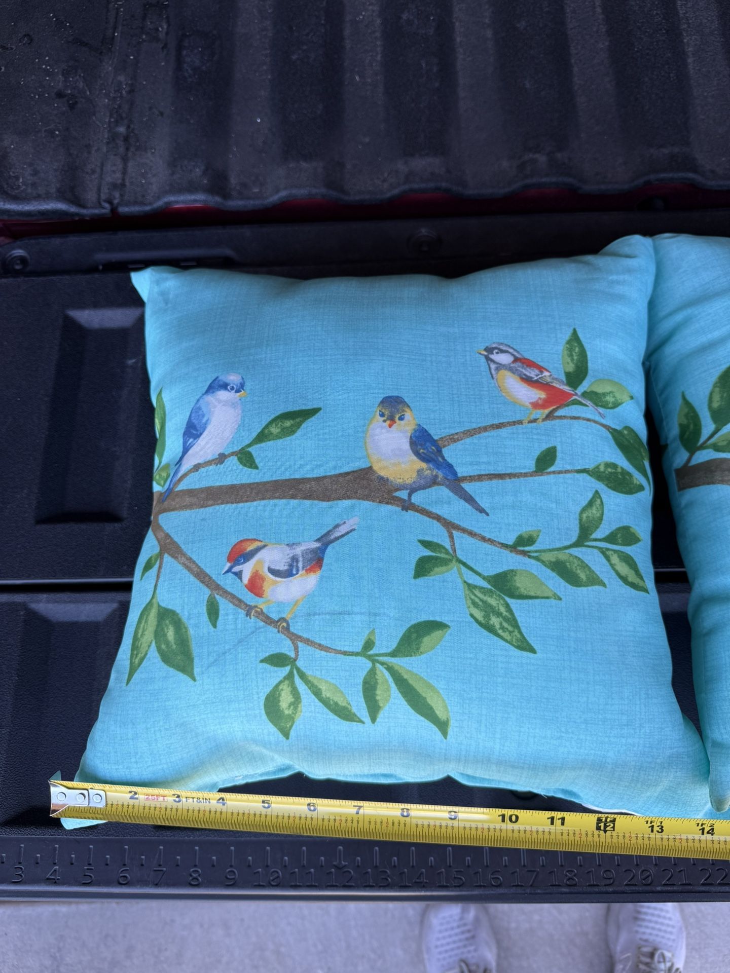 Selling these 2 outdoor pillows for my aunt. Measurements in the pics. Excellent condition. $10. Located in Goodyear near the Cal Ranch store. Thanks for looking.