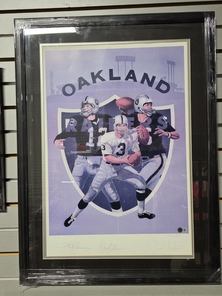 Signed Autograph Raiders QB Legends Stabler Lamonica Plunkett Framed Limited Lithograph